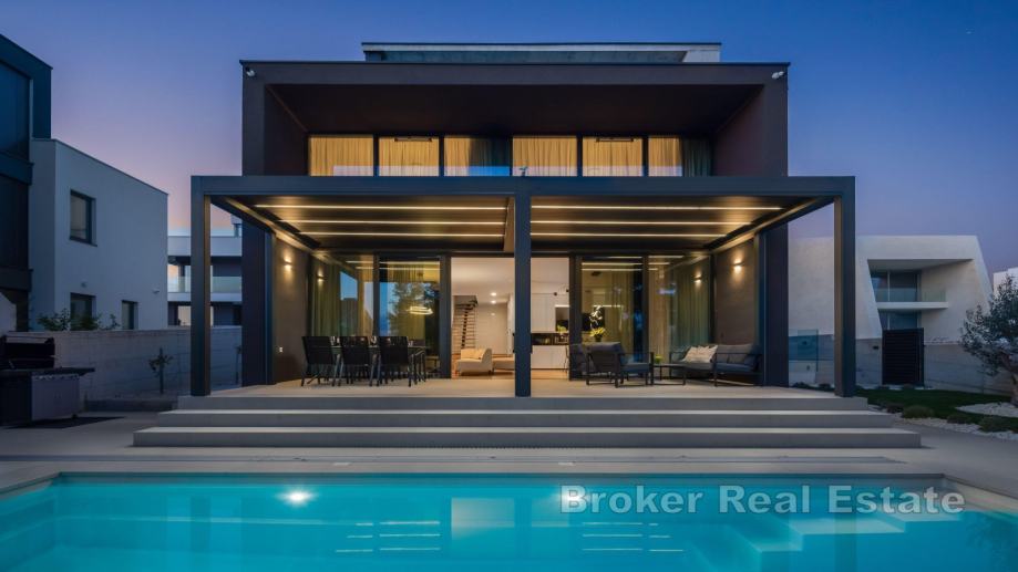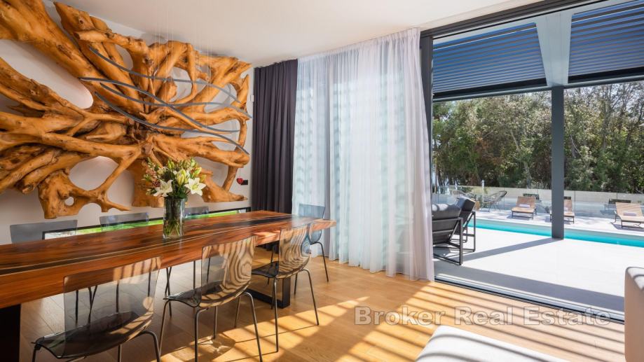 Na prodaju, atraktivna, luksuzna vila, smještena u jednom od najljepših bisera i sinonima u zadarskoj regiji. Pažljivo opremljena modernim namještajem i privlačnim detaljima.