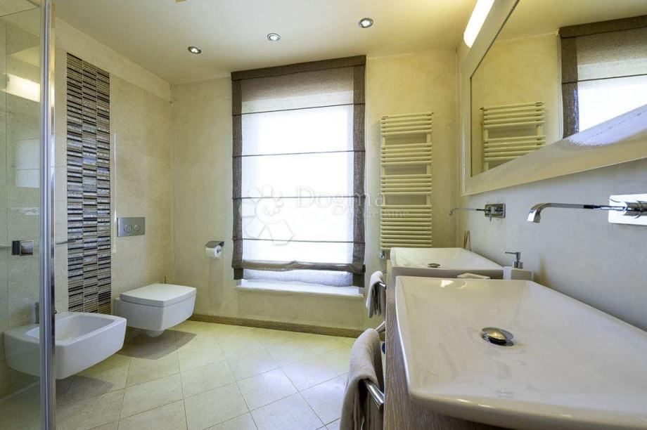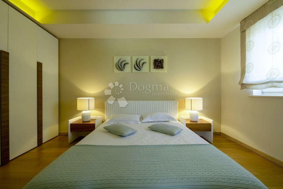 Izgrađena 2012. godine, ova vila predstavlja visokokvalitetnu arhitekturu koja prioritizira udobnost. Prirodni kameni podovi u kuhinji i stubištu, zajedno s prvoklasnim dizajnerskim kupaonicama, svaki detalj odražava posvećenost superiornom arhitektonskom dizajnu. Elegantna mahagonijeva vrata i prozori dodatno obogaćuju prostor, stvarajući sofisticiranu atmosferu koja je pažljivo osmišljena s obzirom na dobrobit gostiju.