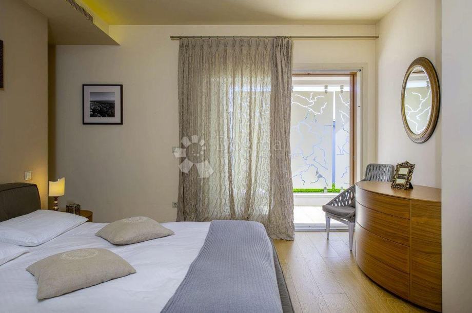 Na drugom katu, arhitektonski dizajn se nastavlja s dvije šarmantne spavaće sobe, opremljene francuskim krevetima i vlastitim terasama. Jedna od spavaćih soba uključuje kupaonicu s hidromasažnom kadom, dok druga nudi tuš/WC, kombinirajući stil i udobnost u skladnom stambenom prostoru.