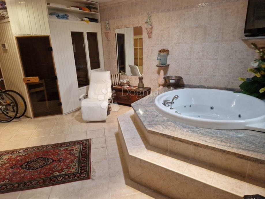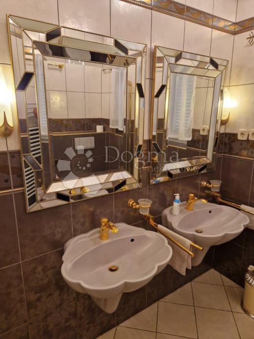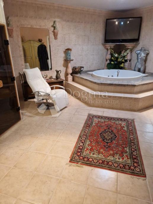 Potpuno renovirana, ova vila odiše sofisticiranim luksuzom zahvaljujući pomno odabranim materijalima vrhunske kvalitete. Mramor Rosso Portogallo, prestižne pločice Valentino i Versace, kao i elegantni Murano lusteri samo su neki od detalja koji krase ovaj prostor. Zidovi su obloženi tehnikom spatolato veneziano, što prostoru daje suptilnu eleganciju, dok stilski namještaj dodatno naglašava osjećaj ekskluzivnosti.