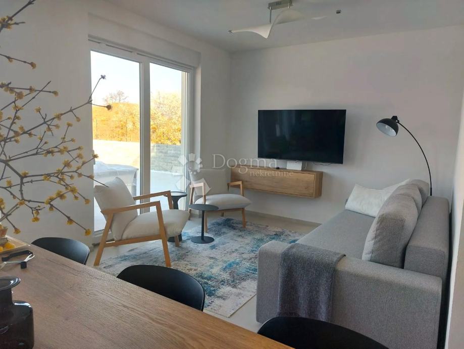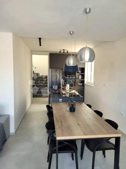 Prva etaža kuće nudi prostrani ulazni prostor, open space kuhinju s otokom i blagovaonicom, dnevni boravak, spavaću sobu, kupaonicu, stepenište, spremište i tehnički prostor. Druga etaža obuhvaća još jednu prostranu spavaću sobu, svaku s vlastitom kupaonicom i izlazom na prozračnu terasu.