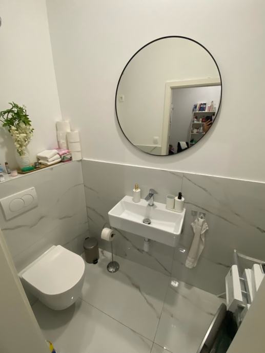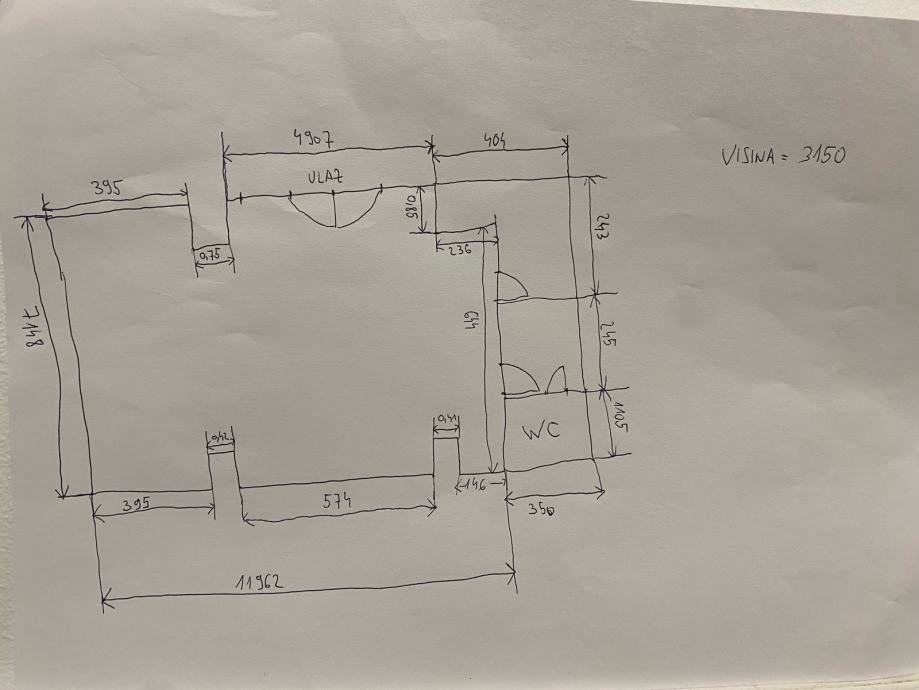 Prostor je pravokutnog oblika bez nosivih pregradnih zidova, trenutno je knaufima podjeljen u 1 veliku prostoriju i 3 male od koje je jedan sanitarni čvor.