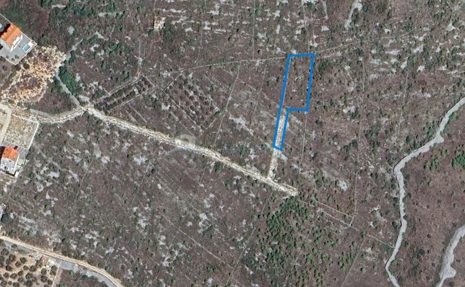 Zemljište je pravilnog pravokutnog oblika, širine cca 22,5 m uz javni pristupni put i dubine cca 42 m, što omogućuje optimalno iskorištenje prostora i funkcionalno projektiranje objekta. Teren je blago nakošen s niskim raslinjem, što olakšava pripremu za gradnju, a dijelom je ograđeno tradicionalnim suhozidom, što zemljištu daje dodatni šarm i mediteranski ugođaj.