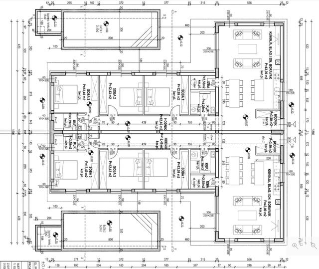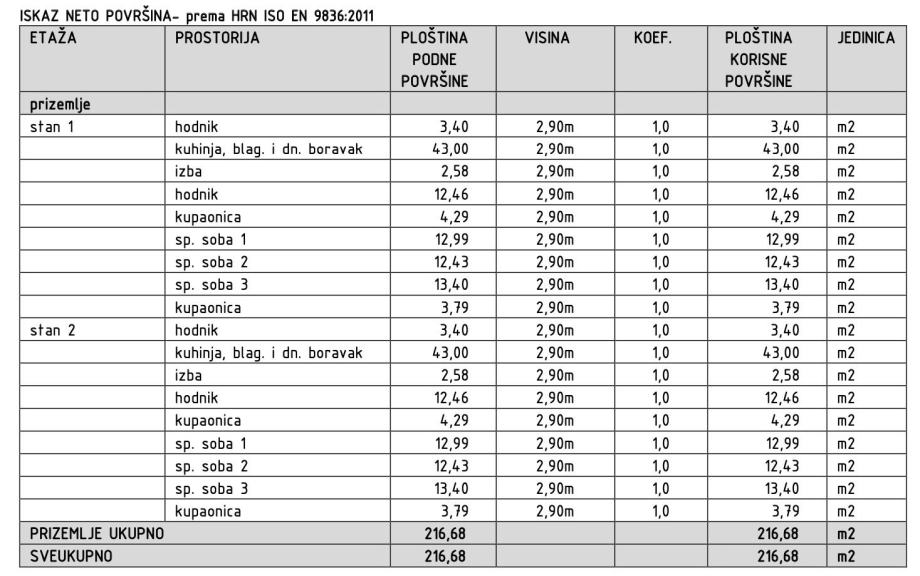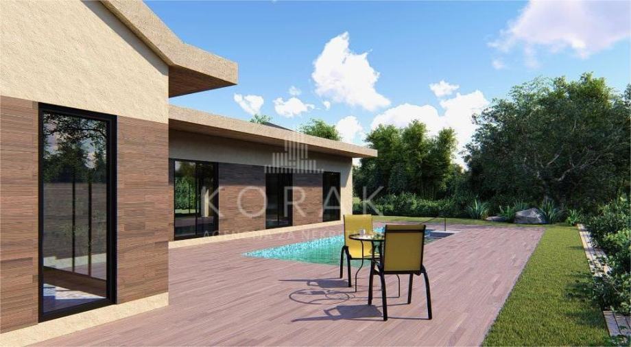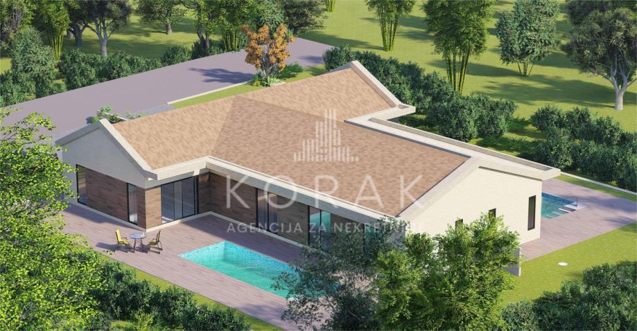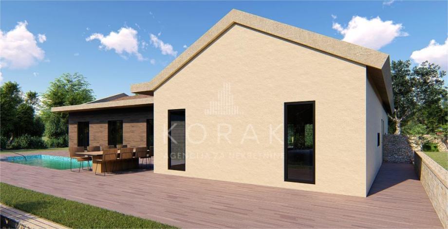 Sukladno projektu svaka kuća se sastoji od open space dnevnog boravka i kuhinje, ostave, 3 spavaće sobe, 2 kupaone i vanjskog bazena površine 24m2.