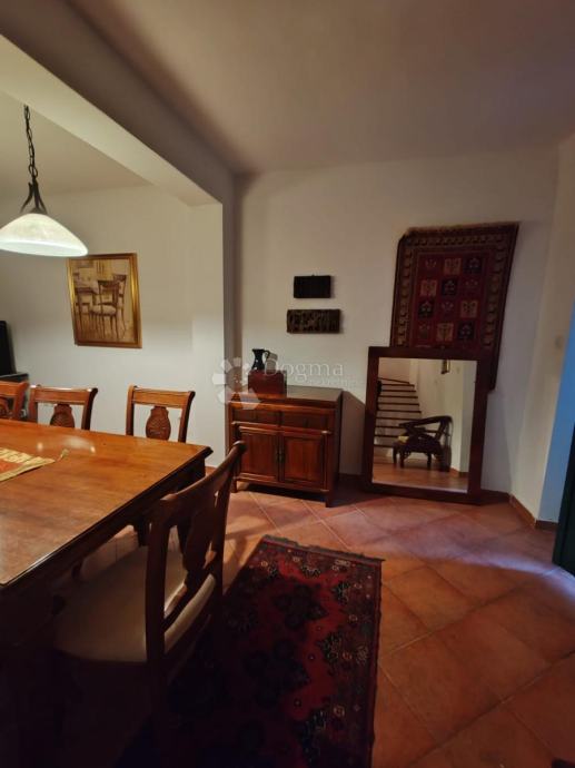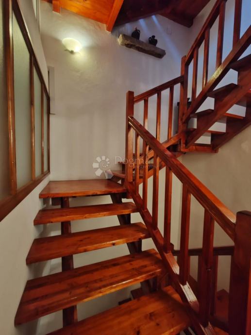 Interijer kuće odiše posebnom toplinom zahvaljujući ručno izrađenom drvenom impresivnom stubištu i unikatnom drvenom namještaju s autentičnim detaljima koji stvaraju skladan spoj mediteranskog i orijentalnog stila što kući daje dodatnu vrijednost.