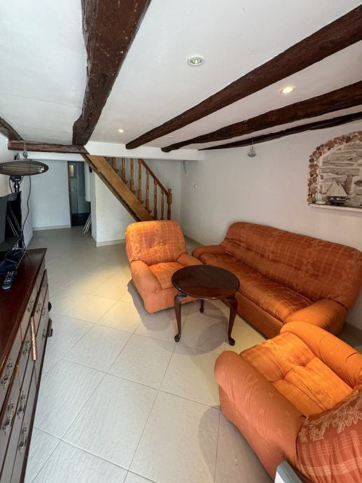 Ova šarmantna kuća stambene površine 90 m² prostire se na dvije etaže i uključuje tri spavaće sobe, jedno kupatilo, prostranu kuhinju s blagovaonicom te dnevni boravak. Interijer je uređen u rustikalnom stilu, s kamenim zidovima i drvenim detaljima koji prostoru daju toplinu i karakter.