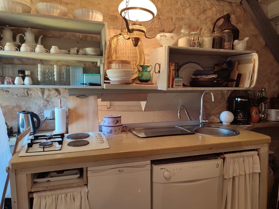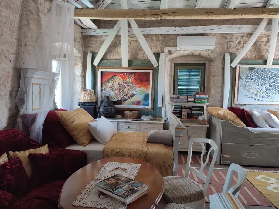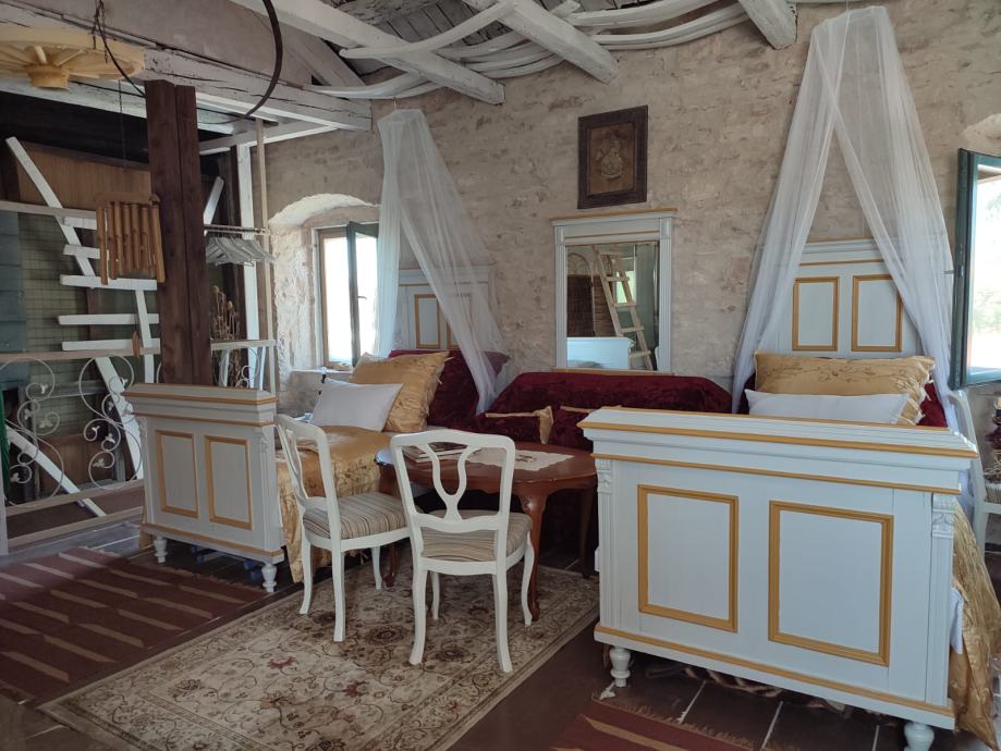 Kuća se prostire na 145 m², a unutar njenih kamenih zidova nalaze se tri prostrane spavaće sobe i dvije moderno uređene kupaonice. Dnevni boravak odiše toplinom i ugodnom atmosferom, savršen za opuštanje s obitelji ili druženja s prijateljima.