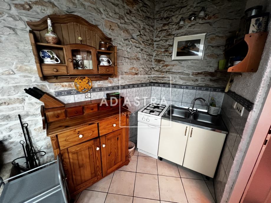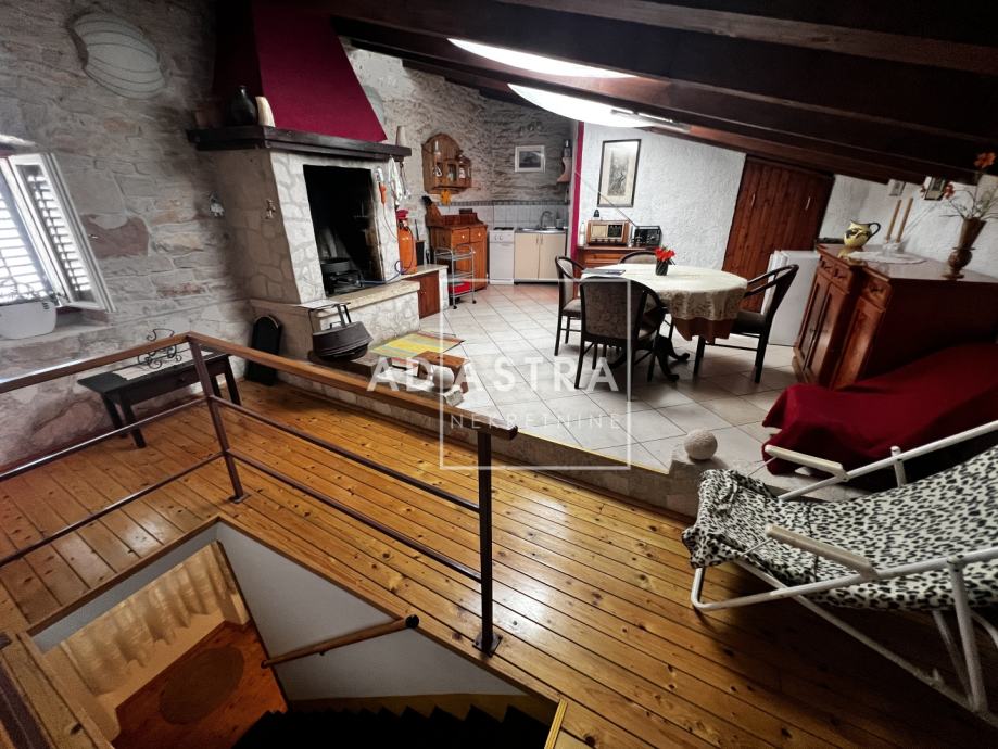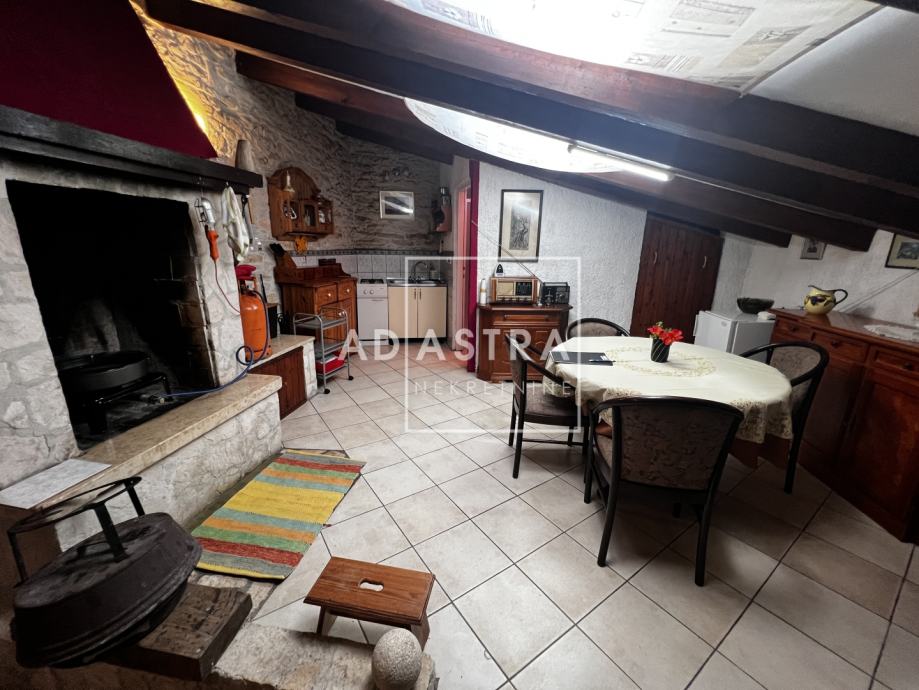 Na gornjoj se etaži smjestio prostrani dnevni boravak s potpuno funkcionalnim ognjištem, kuhinja, kupatilo, ostava te zasebna soba s dodatnom ostavom.