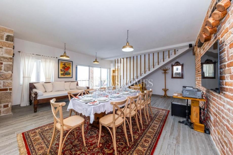 S prostrane terase pruža se neometan pogled na more i okolicu, što ovu nekretninu čini izuzetno atraktivnom – bilo za osobnu upotrebu, bilo za turistički najam s velikim potencijalom prihoda.