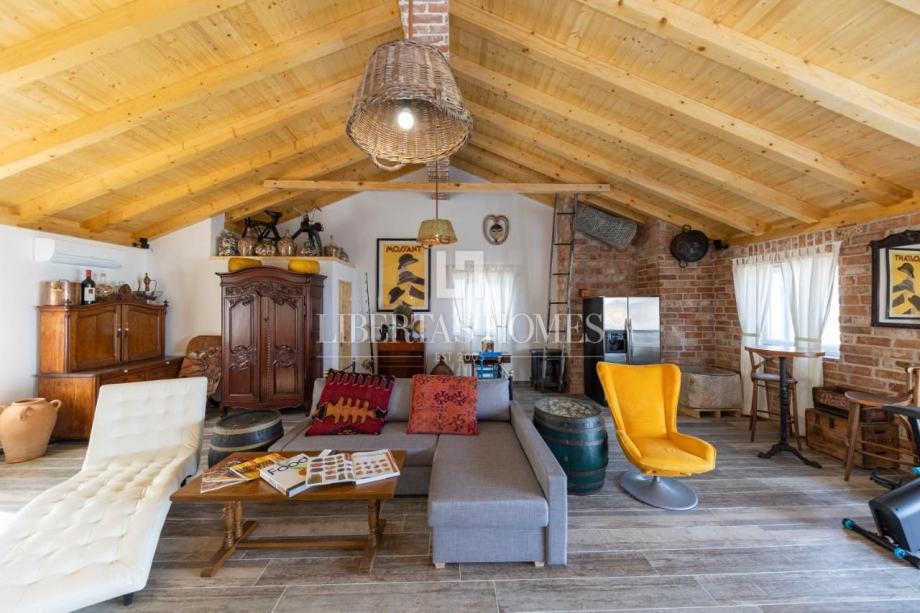 Posebnu vrijednost daje pažljivo uređena okućnica s popločanim dijelovima, sunčalištem i privatnim bazenom. U sklopu dvorišta nalazi se i pomoćni objekt s tradicionalnom ljetnom kuhinjom i kaminom.