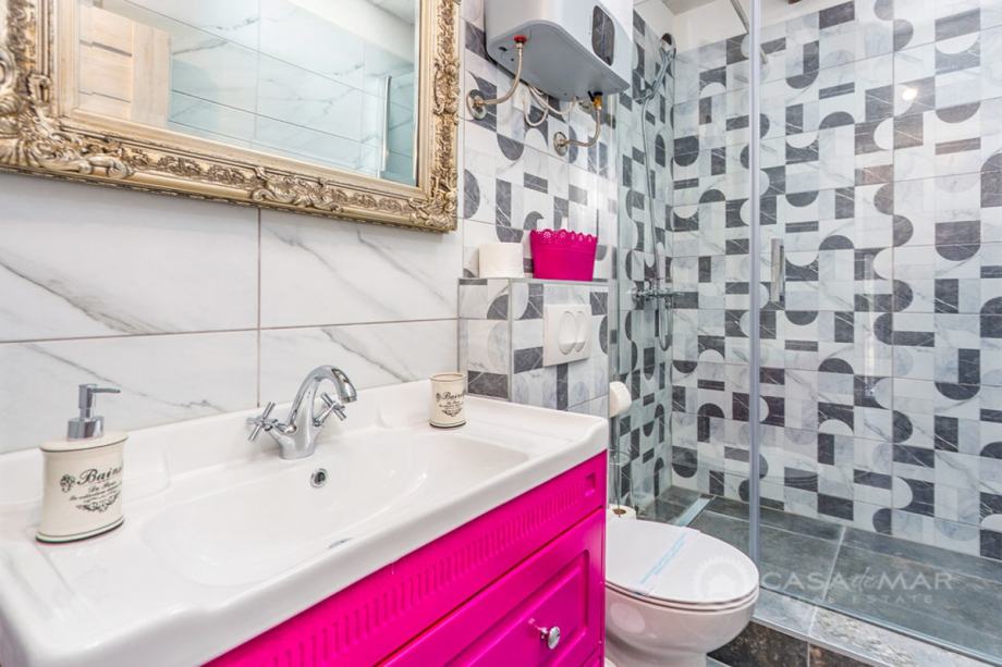 Nekretnina se prodaje potpuno namještena, opremljena klimatskim uređajima i dvama privatnim parkirnim mjestima. Udaljenost od mora iznosi 3000 metara, što osigurava mir i privatnost, a istovremeno zadržava blizinu svih sadržaja.