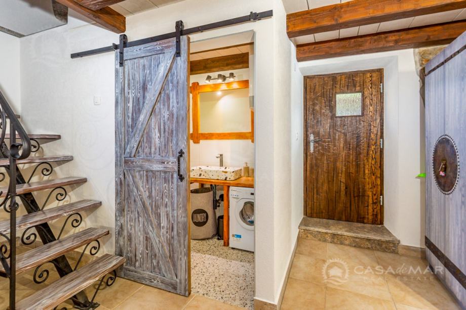 Na prodaju je šarmantna kamena dvojna kuća u okolici Krka, smještena u mirnom okruženju. Kuća je temeljito renovirana 2023. godine, s posebnim naglaskom na očuvanje izvornog mediteranskog stila.