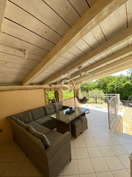 Kuća se proteže na tri etaže i ukupno 170 m² stambenog prostora, a okružuje je uređena i ograđena okućnica od 950 m². Sastoji se od: