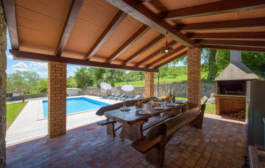 Dvorište ove divne nekretnine nudi brojne mogućnosti za opuštanje i uživanje. Tu se nalazi bazen površine 57 m², savršen za ljetne dane. Uz bazen je smješten pomoćni objekt površine 61 m², opremljen vanjskom kuhinjom i velikim stolom s kaminom za roštiljanje, te unutarnjim kaminom i blagovaonicom za ugodna okupljanja i tijekom hladnijih dana.