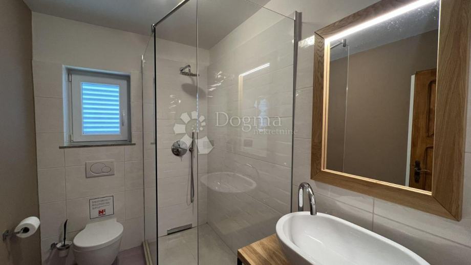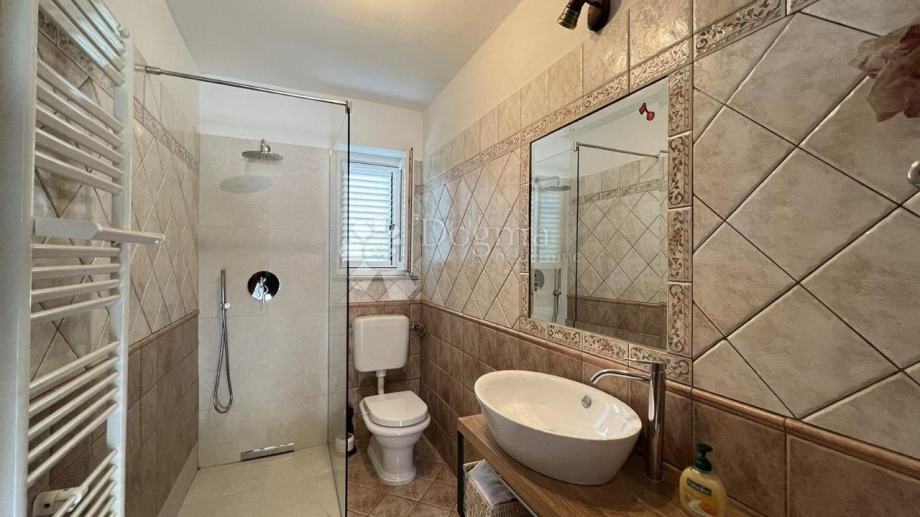 Kuća se prostire na 400 m² i sastoji se od dvije stambene jedinice, sadrži garažu, konobu i pomoćni objekt. Ove dvije jedinice mogu djelovati kao cjelina ili biti potpuno odvojene, s obzirom na to da su povezane zajdeničkim hodnikom koji se prema Vašim željama može zatvoriti. Svaka stambena jedinica uključuje: