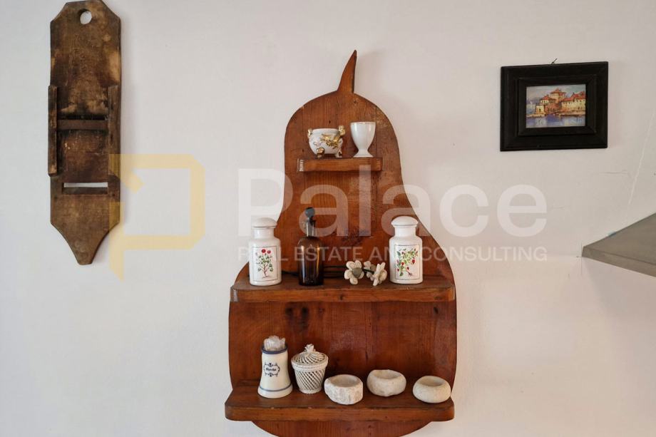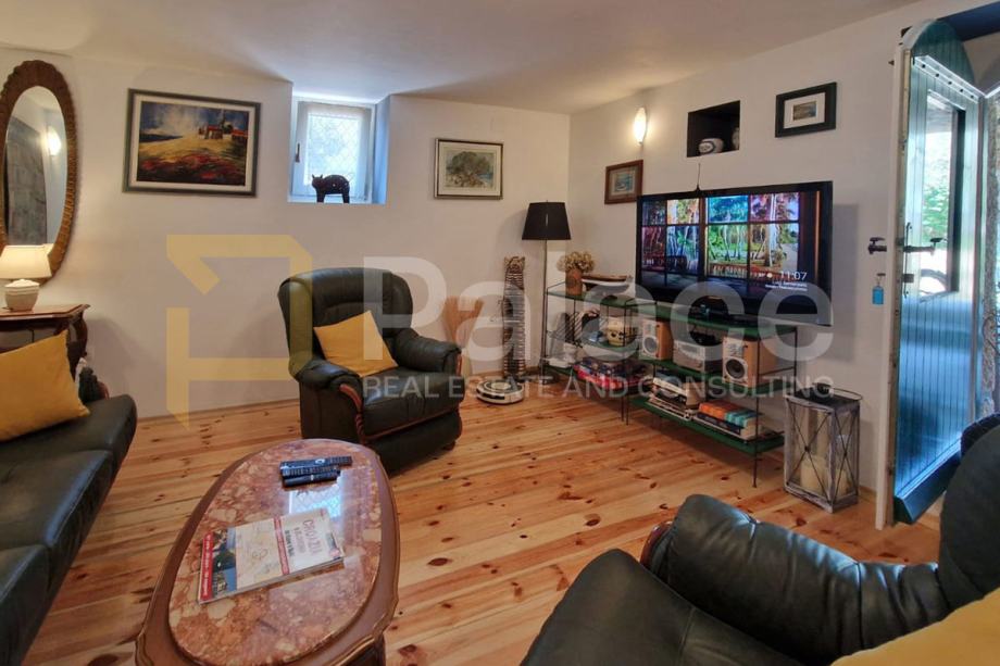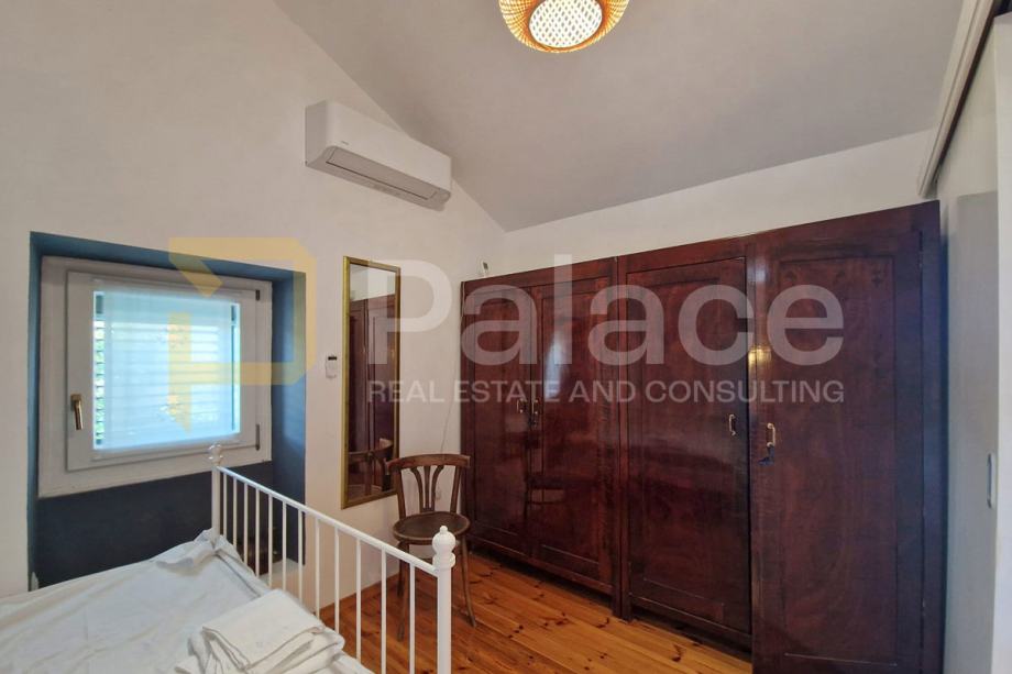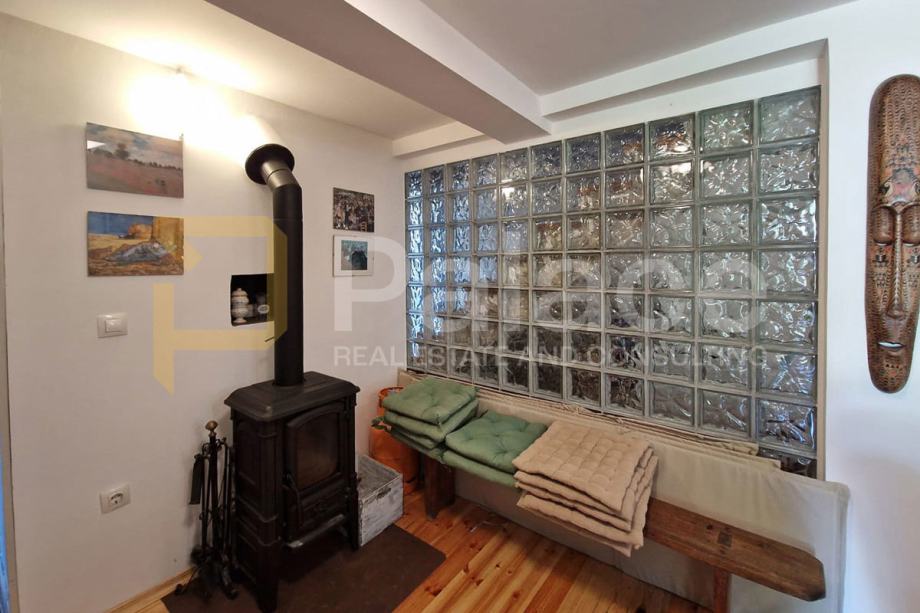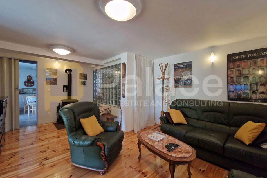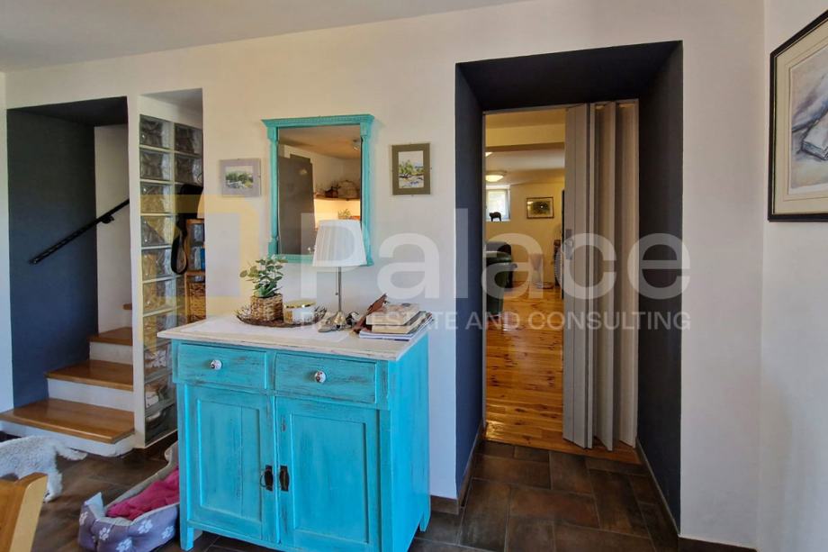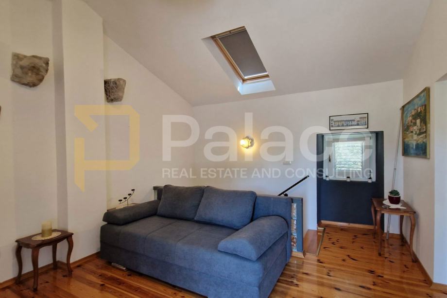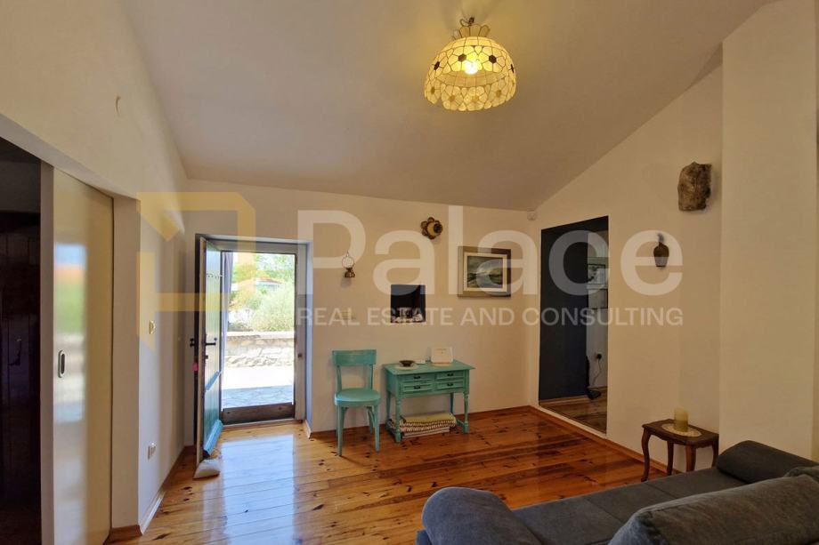 Kuća se prostire na dvije etaže ukupne površine 104 m², a smještena je na prostranom zemljištu veličine 913 m². U prizemlju se nalazi otvoreni dnevni boravak s blagovaonom i potpuno novom kuhinjom, dok unutarnje stepenice vode na kat gdje su smještene dvije spavaće sobe, kupaonica i predsoblje s dodatnim ležajem. Posebna pažnja posvećena je očuvanju izvornih detalja u kombinaciji s novim, kvalitetnim namještajem, što prostoru daje autentičan karakter i osjećaj topline.