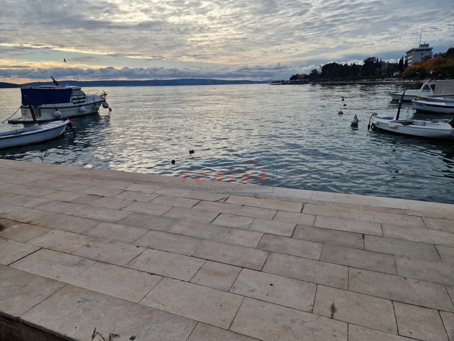 Prodaje se autohtona kuća na vrlo dobroj lokaciji u centru mjesta u prvom redu uz obalu-rivu s otvorenim pogledom na more, arhitektonski definirana kao poslovno stambena zgrada razine prizemlja, dva kata i potkrovlja. Prizemlje je u naravi poslovni prostor na cijeloj etaži i pruža mogućnost širokog spektra dijelatnosti u budućoj namjeni (trgovine, uredi, ordinacije, lokali, poslovnice i sl.) Prvi kat je iste etažne veličine i po projektu rekonstrukcije zgrade ima šest soba te kuhinju-blagavaonu. Drugi kat ima također šest soba, dvije kuhinje-blagavaone, garderobnu sobu te praonicu. Potkrovlje je na južnoj polovici dijela zgrade i po projektu rekonstrukcije ima tri sobe, kuhinju, dva WC-a i tri kupaonice a na drugoj polovici zgrade je velika terasa s pogledom na Split i more. Kuća je trenutno u izvornom stanju i potrebna je kompletna renovacija a pruža mogućnost i drugih rješenja kod renovacije. (stanovi, apartmani, hostel, hotel, uredi i sl.). Kuća ima uredno vlasništvo, Uporabnu dozvolu i Glavni projekt rekonstrukcije.