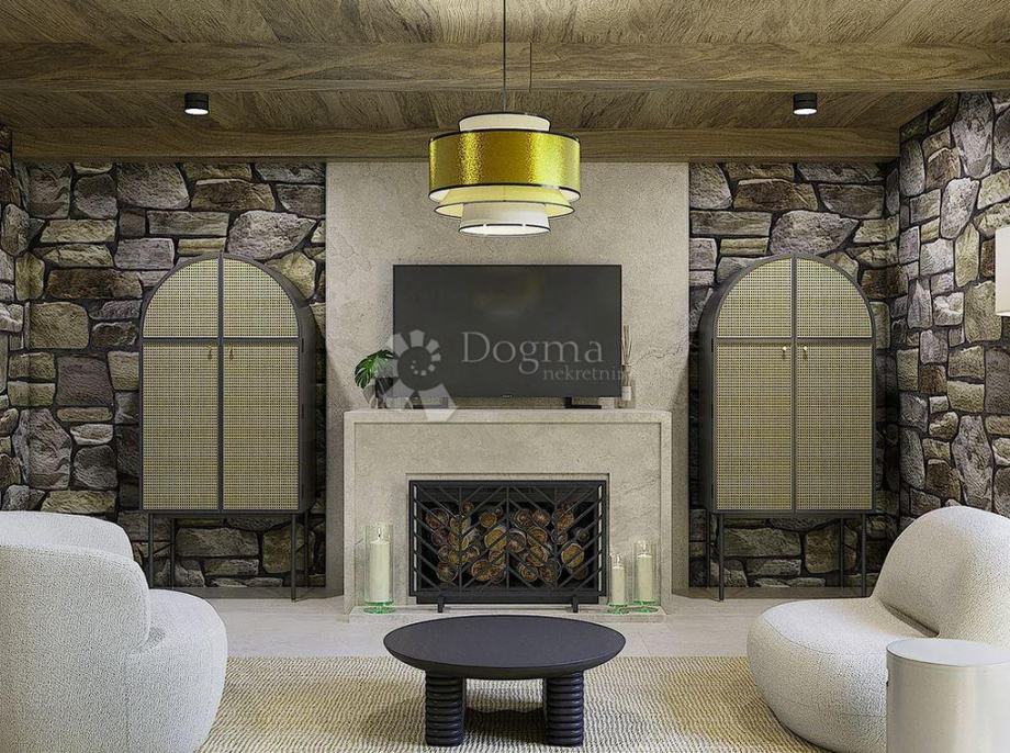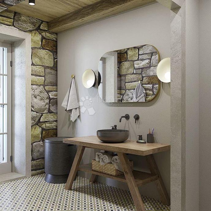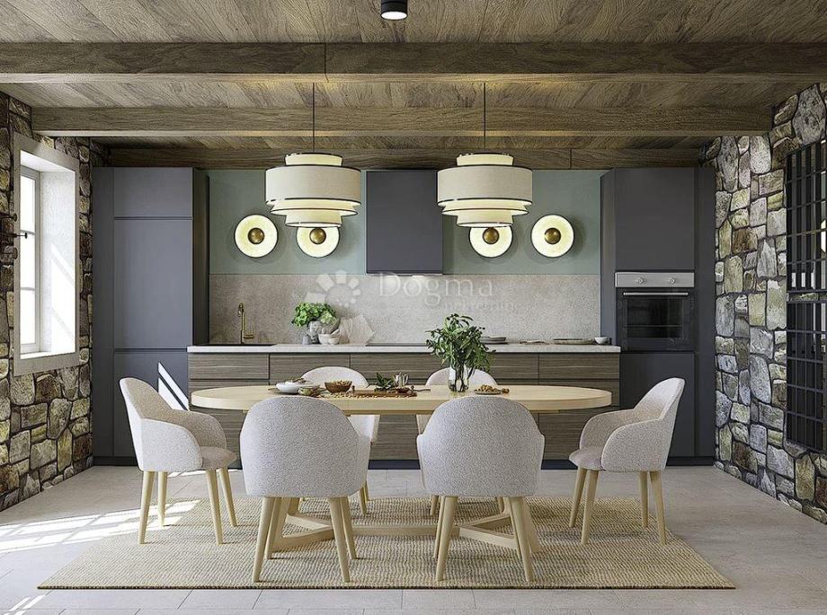 Otkrijte jedinstvenu priliku za posjedovanje prekrasno renovirane vile koja slavi suštinu tradicionalne arhitekture! Ova šarmantna kamena kuća s ukupnom površinom od 183 m² pretvara se u zapanjujuću vilu s bazenom, smještenu na zemljištu od 153 m².