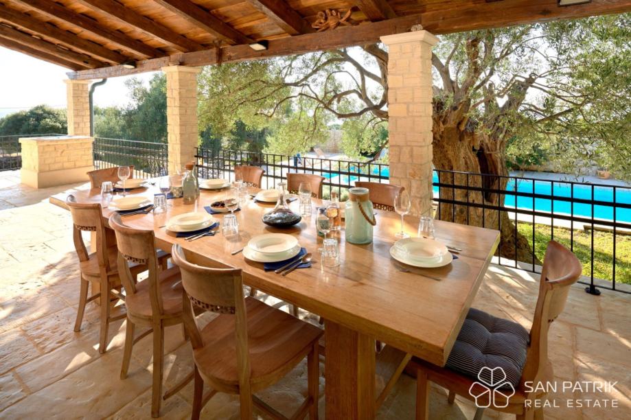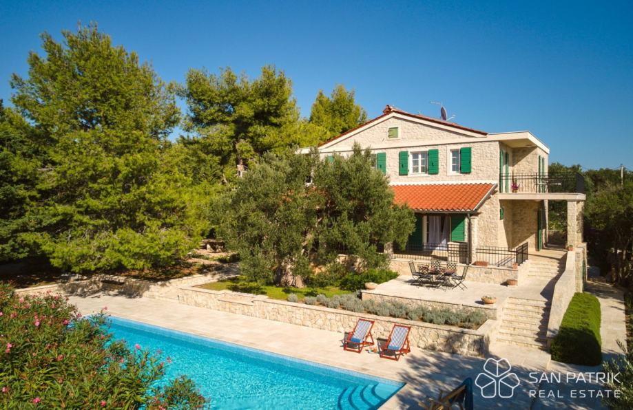 Vila Lun - prizemlje + kat - stambena površina 210 m2 (4 spavaće sobe + 3 kupaonica) + 4 terase + bazen (75 m2) + vrt + vanjska parking mjesta, na parceli površine 2.600 m2 = 1.750.000 EUR (s uključenim namještajem)
