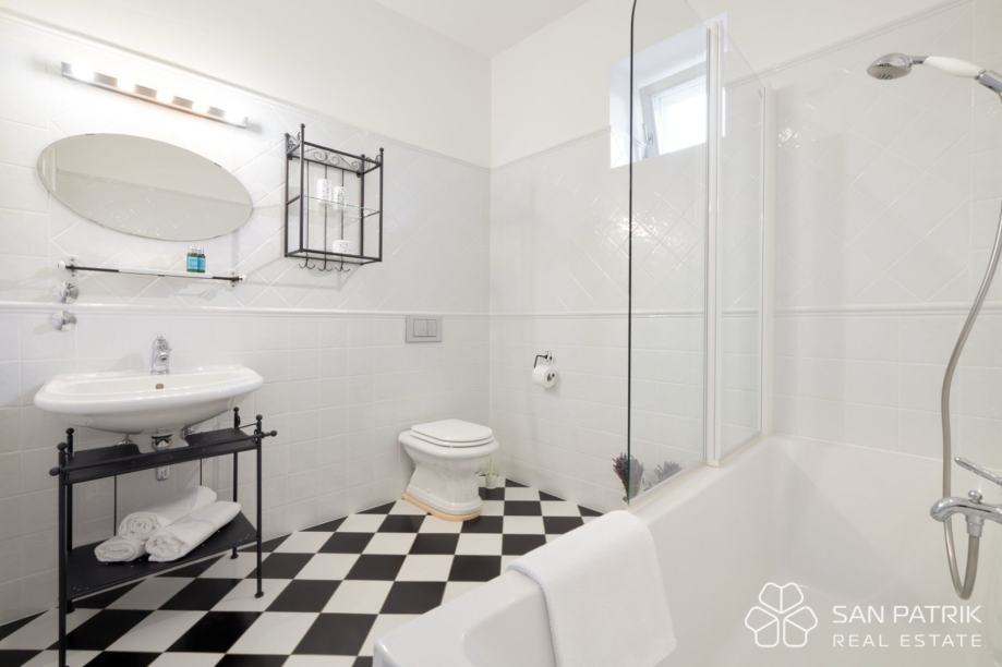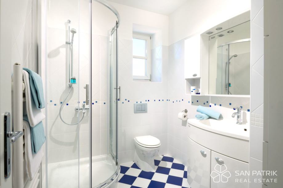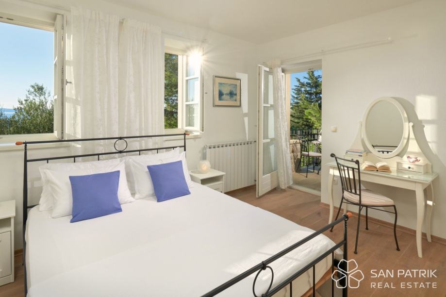Svi detalji odišu toplinom i kvalitetom: drvena stolarija s izo staklima, masivni hrastov pod u sobama, namještaj od tikovine i hrastovine, keramičke pločice birane s ukusom. Škure su obnovljene 2023. godine, u mediteranskom drvenom stilu.