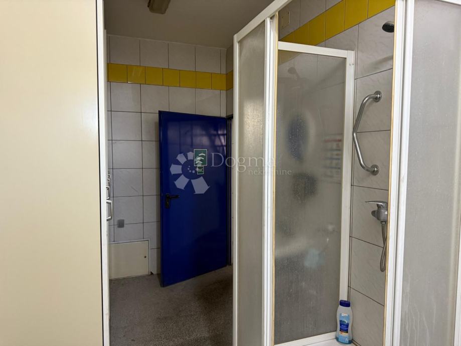 U prizemlju se nalazi potpuno opremljena automehaničarska radionica za teretna i osobna vozila, osmišljena za intenzivan i profesionalan rad. Radni prostor ima tri podizna segmentna vrata koja omogućuju nesmetan ulaz i izlaz većih vozila, servisni kanal te dvije dizalice za kamione, što ovaj objekt čini izuzetno rijetkim i traženim na tržištu najma. Industrijska struja provedena je kroz cijelu zgradu, zidovi su betonski, a sva unutarnja vrata metalna – ovdje je sve podređeno izdržljivosti, sigurnosti i svakodnevnom korištenju bez kompromisa. Zaposlenicima su na raspolaganju garderoba, sanitarni čvor i čajna kuhinja, praktično i funkcionalno povezani s radnim dijelom.