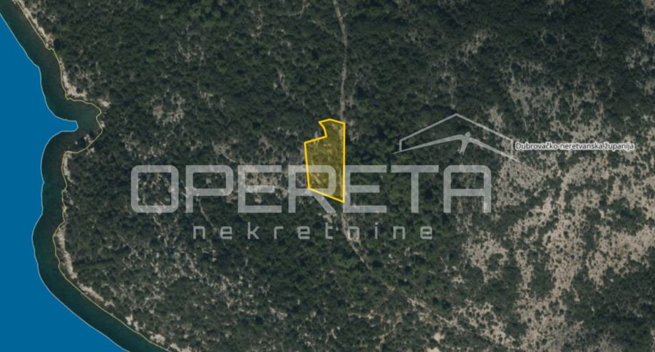 Na južnoj strani mjesta Baćina, skriveno u miru zelenila i uz blizinu mora, smjestilo se zemljište površine 2.126 m2 koje na prvi pogled osvaja svojim prirodnim okruženjem i autentičnim dalmatinskim šarmom.