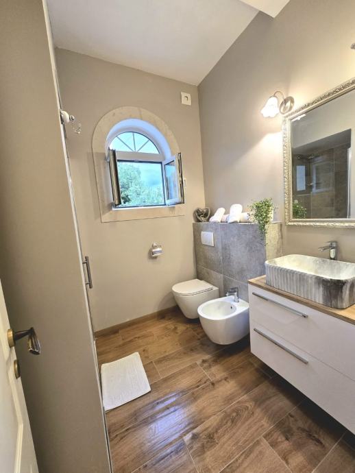 Stan se nalazi na drugom katu manje stambene zgrade, potpuno namješten. Opremljen je klima uređajem, televizijom, mini kuhinjom.