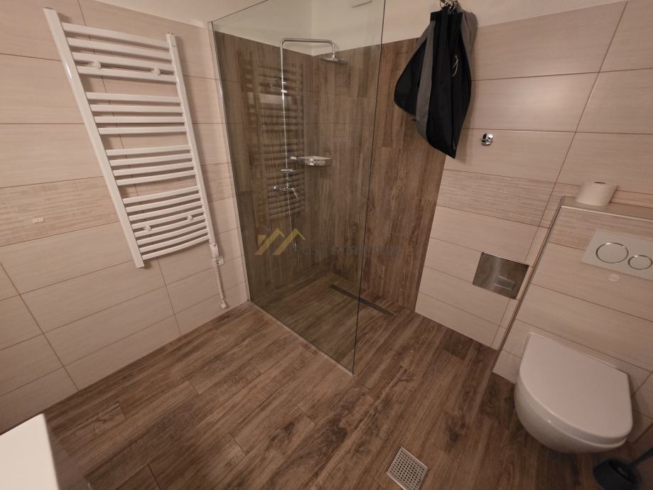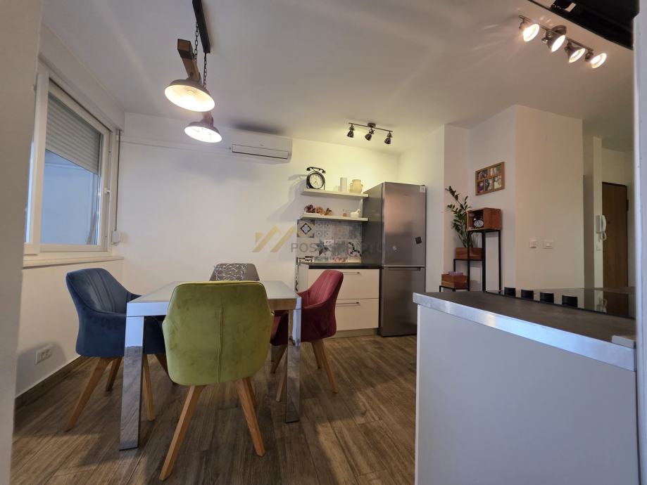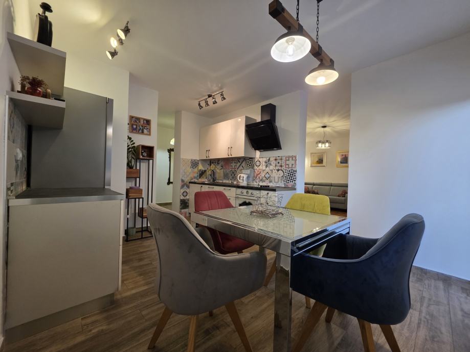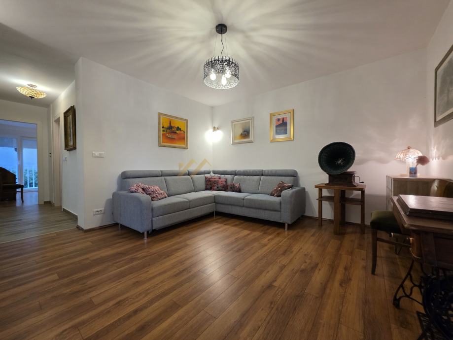 Pojišan, iznajmljuje se lijep i komforan dvosoban stan ukupne površine 77,00 m2 položen na prvom katu stambene zgrade, orijentacije jug-sjever.