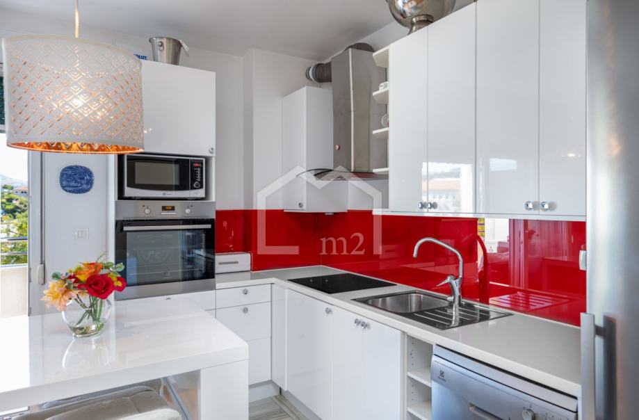 Stan je u potpunosti opremljen modernim namještajem i svim potrebnim uobičajenim kuhinjskim uređajima.