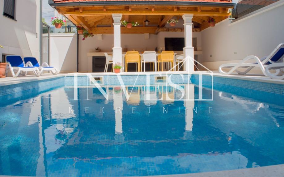 Sastoji od ulaznog dijela, dvije kupaonice, dnevnog boravka iz kojeg se izlazi u vanjski dio s bazenom i kaminom, kuhinje s blagovaonicom, tri spavaće sobe, te pripadajućeg parkirnog mjesta.