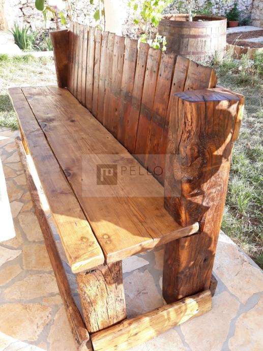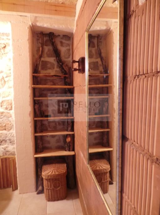 Unutrašnjost dekorirana kamenom, drvom i ciglom. Ispred kuće je dvorište ograđeno kamenim zidom, te vrt s dalmatinskim voćkama.