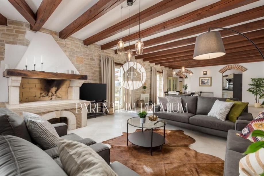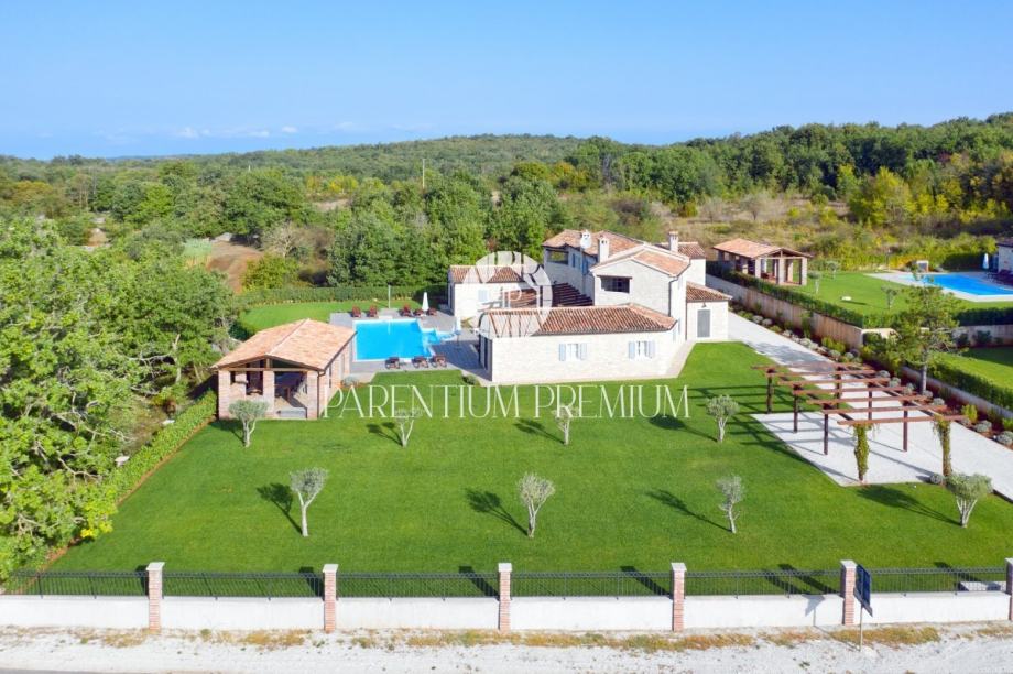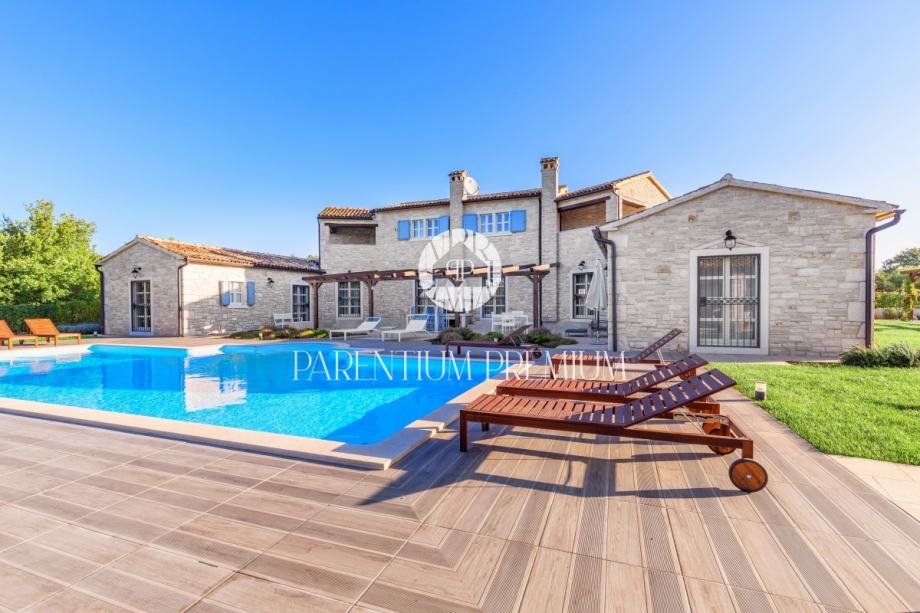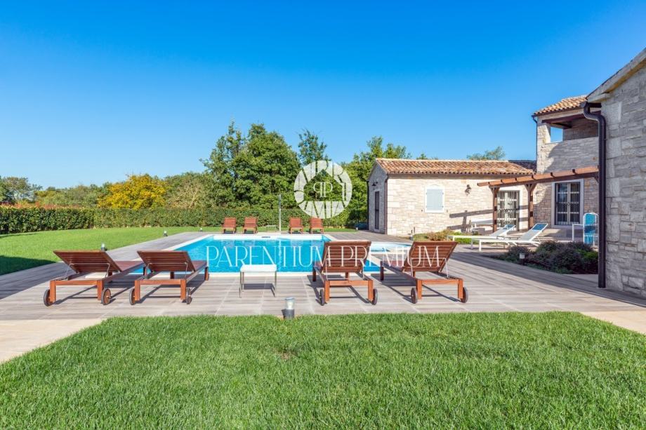 Predivna luksuzna vila kamenog eksterijera koja krije savršeno dizajniran interijer, nalazi se u mirnom mjestu u središnjem dijelu Istre.
