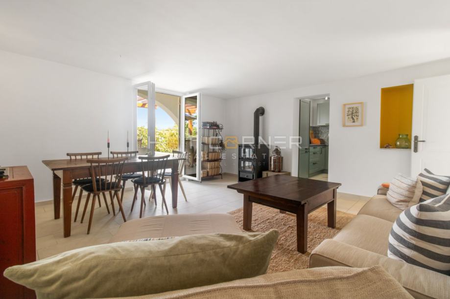Kuća se prodaje kompletno namještena, s uključenim svim uređajima i namještajem, osim privatnih stvari vlasnika, poput posteljine ili vrtnog alata.