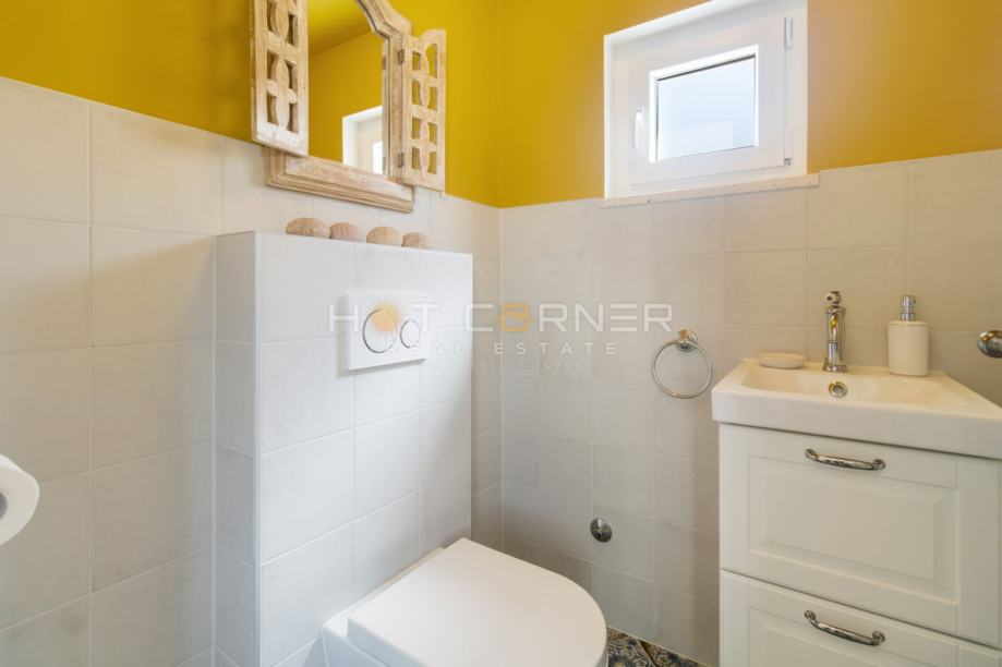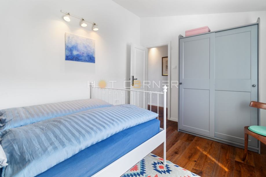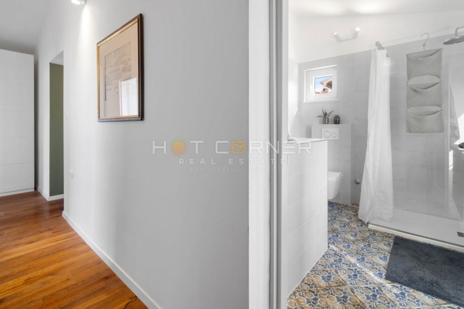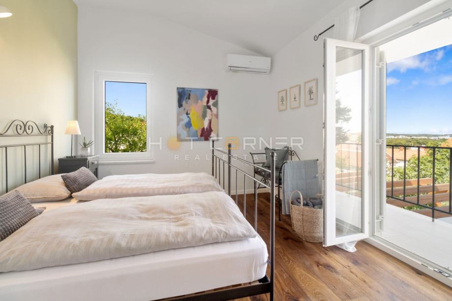 Na katu kuće vas čekaju dvije spavaće sobe, od kojih jedna ima nevjerojatan otvoren pogled na more i otoke, radna soba te kupaonica s tuš kabinom.