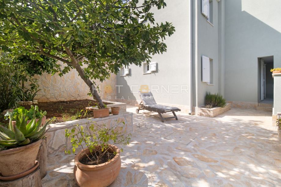 Vrt je apsolutno prekrasan i iznimno njegovan, s obiljem stabala mandarina, naranči, grejpa i drugih voćaka, pružajući ne samo vizualni užitak već i vlastitu berbu plodova tijekom sezone.