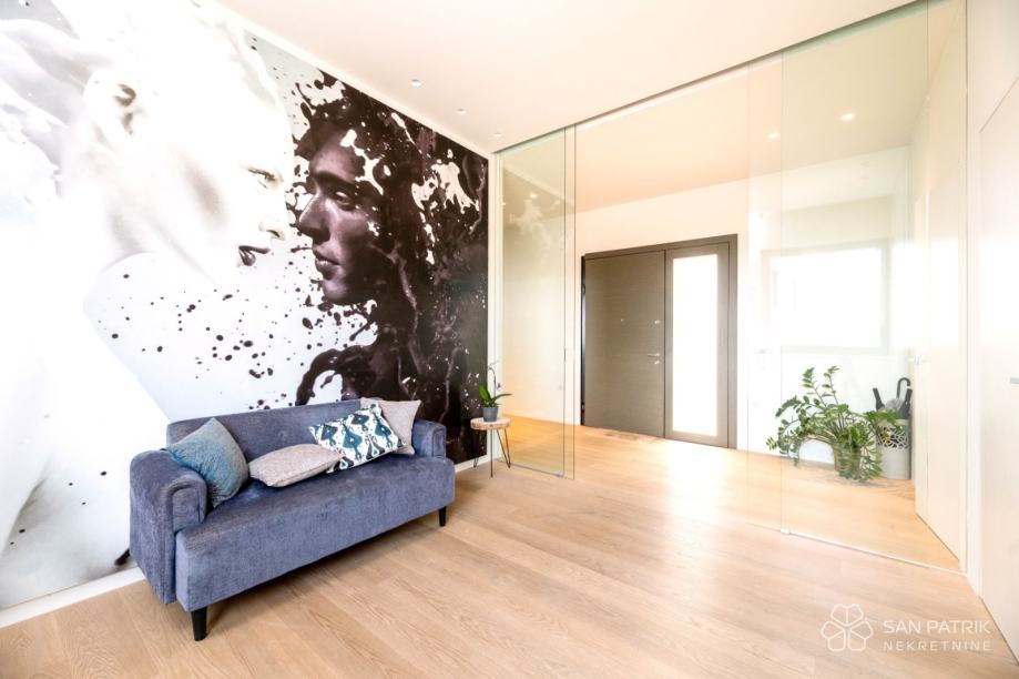 Moderna i prozirna arhitektura ove izvanredne vile proteže se na 420 m², raspoređenih u podrumu, prizemlju i prvom katu. Dizajn je inspiriran putem sunca, osiguravajući da se prostorije nikada ne zagrijavaju previše, a poseban naglasak stavljen je na prostranost i prirodnu svjetlost. Kroz vilu su korišteni visokokvalitetni materijali, namještaj izrađen po mjeri i komponente najviše kvalitete, jamčeći svaku zamislivu udobnost.