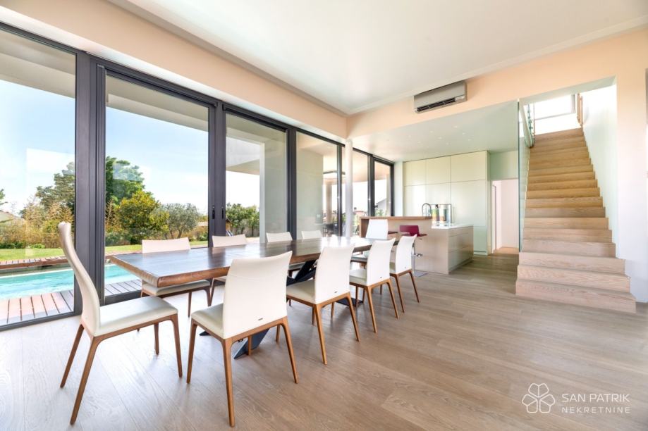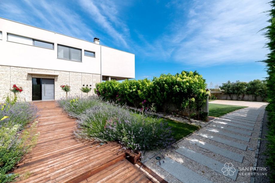 Ova suvremena vila, sa svojom promišljenom gradnjom, modernom arhitekturom, ukusnim uređenjem i prostranim bajkovitim vrtom, idealna je nekretnina za obiteljski život, opuštanje ili kao investicija za iznajmljivanje u turističke svrhe.