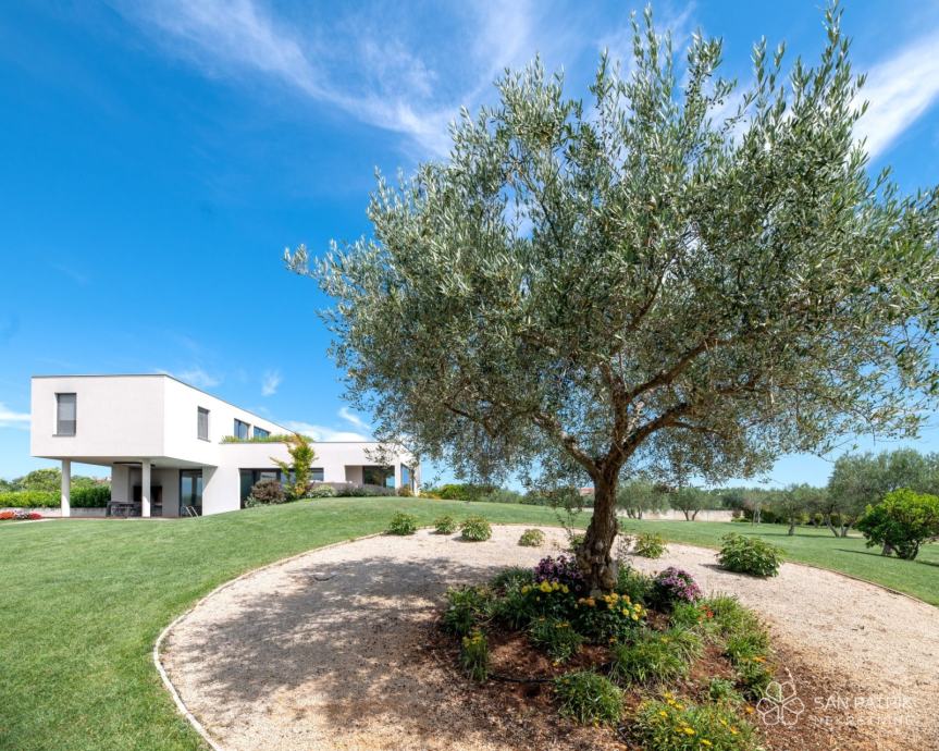 Smještena u mirnom okruženju s prekrasnim pogledom na more i obližnje maslinike na parceli od 5.000 m2, ova luksuzna vila nalazi se samo 500 metara od mora u Umagu, šarmantnom gradu na istarskoj obali koji očarava svojim šarmom, raznolikošću i sportskom ponudom. Ova pomno dizajnirana vila sintetizira jedinstvenost cijele regije, nudeći drugačije mediteransko iskustvo.