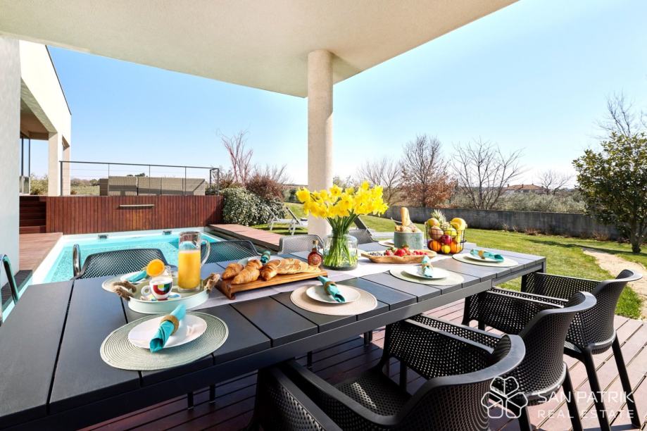 Ova suvremena vila, sa svojom promišljenom gradnjom, modernom arhitekturom, ukusnim uređenjem i prostranim bajkovitim vrtom, idealna je nekretnina za obiteljski život, opuštanje ili kao investicija za iznajmljivanje u turističke svrhe.