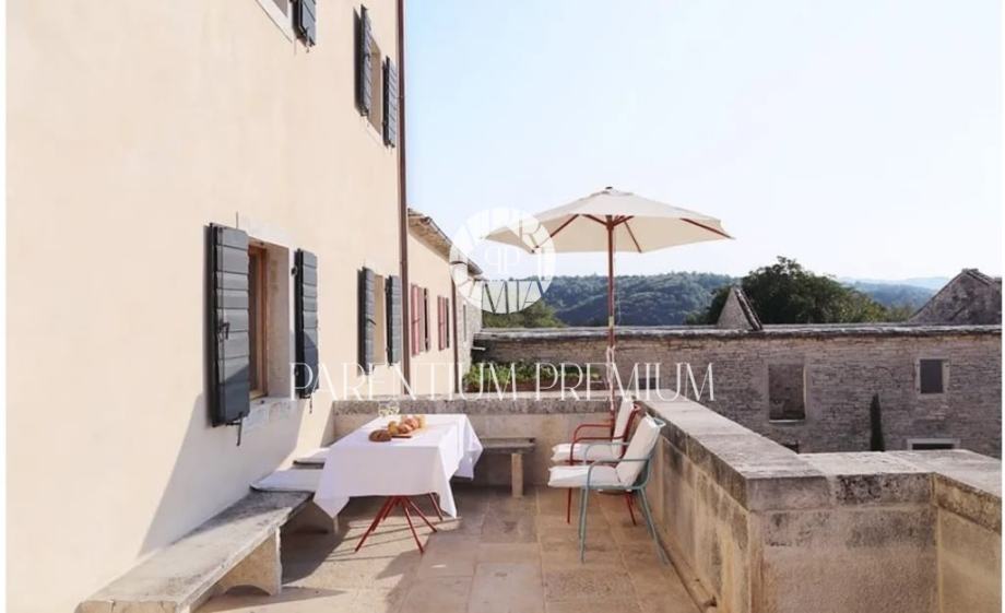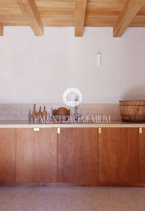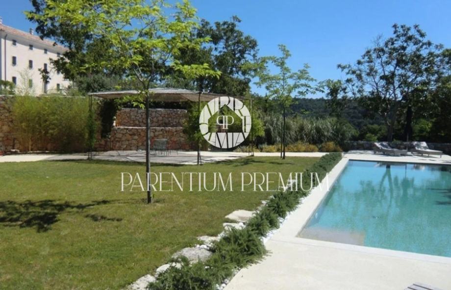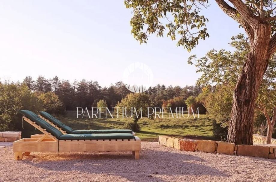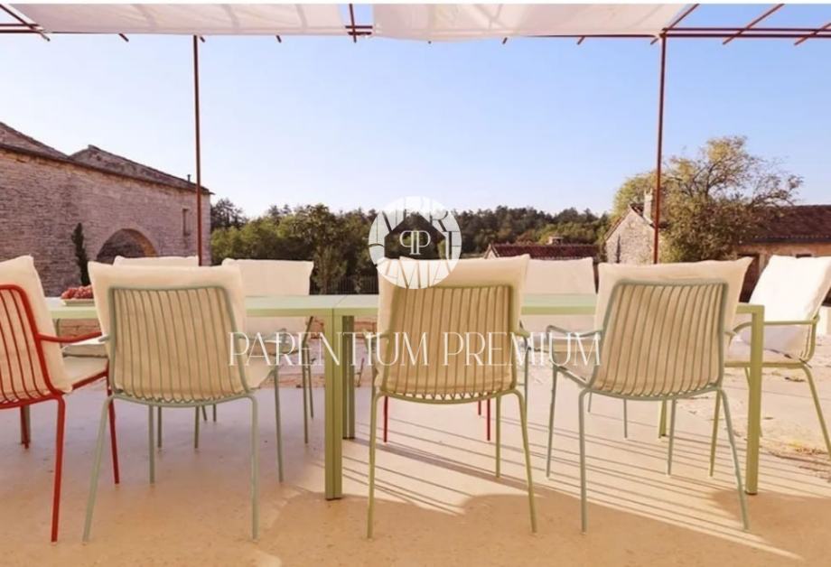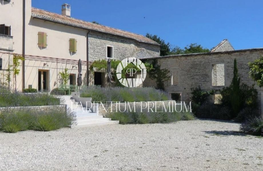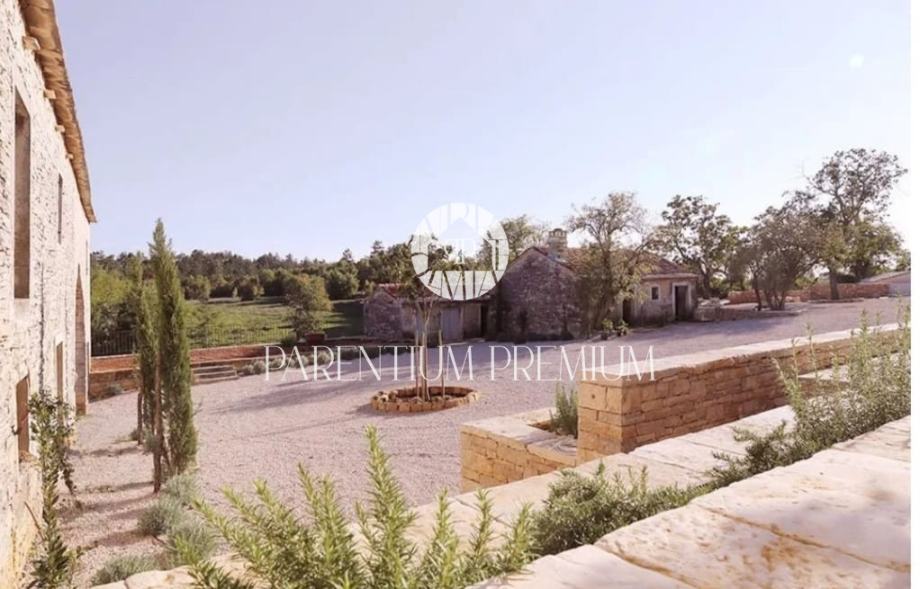 Potpuno obnovljena kuća kao i razne gospodarske zgrade, prostrano unutarnje dvorište i veliki bazen sa sunčalištima uključujući i bazensku kućicu smješteni su na površini od 5.230 m2.