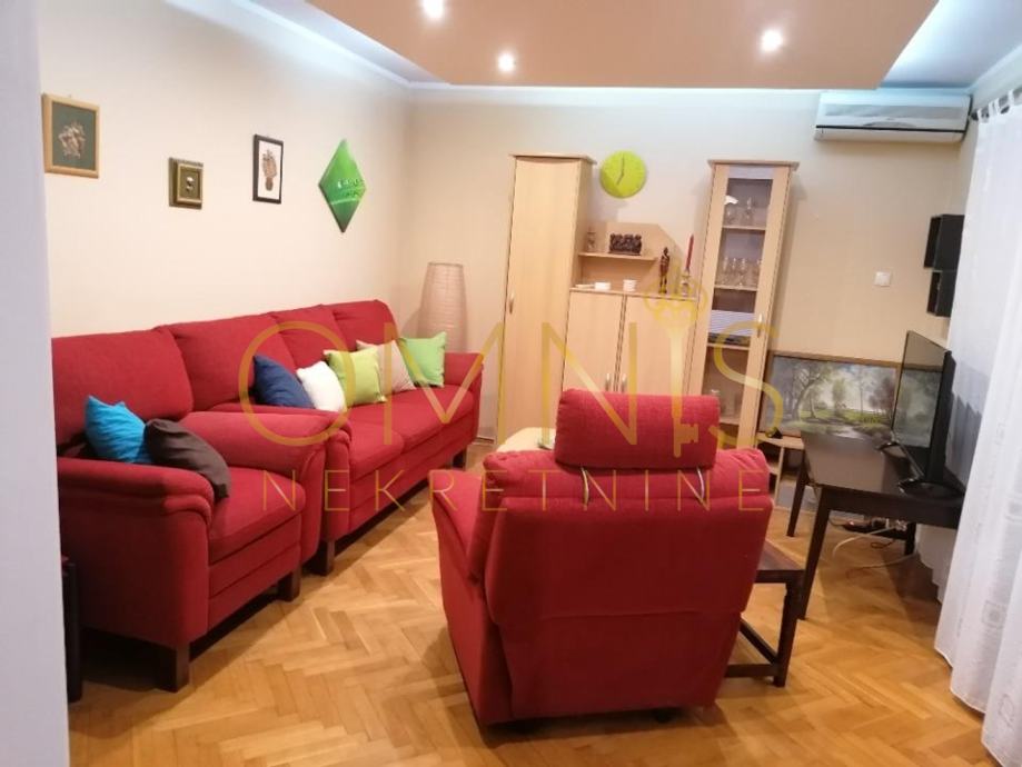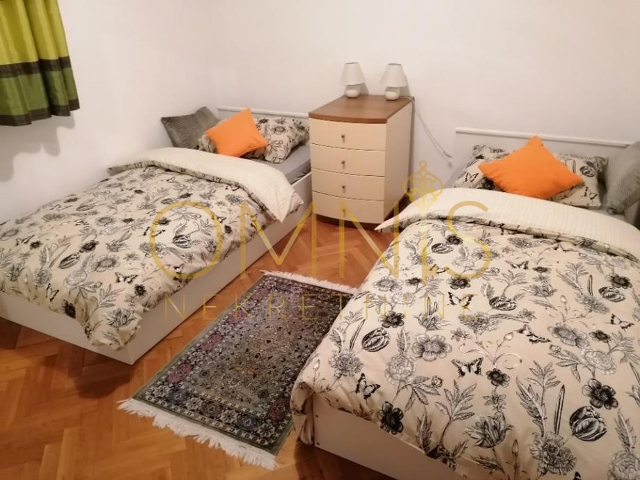 Stan je kompletno adaptiran 2019g, te se sastoji od tri sobe, dnevnog boravka, kuhinje s blagavaonicom, dvije kupaonice s wc-om i hodnika.