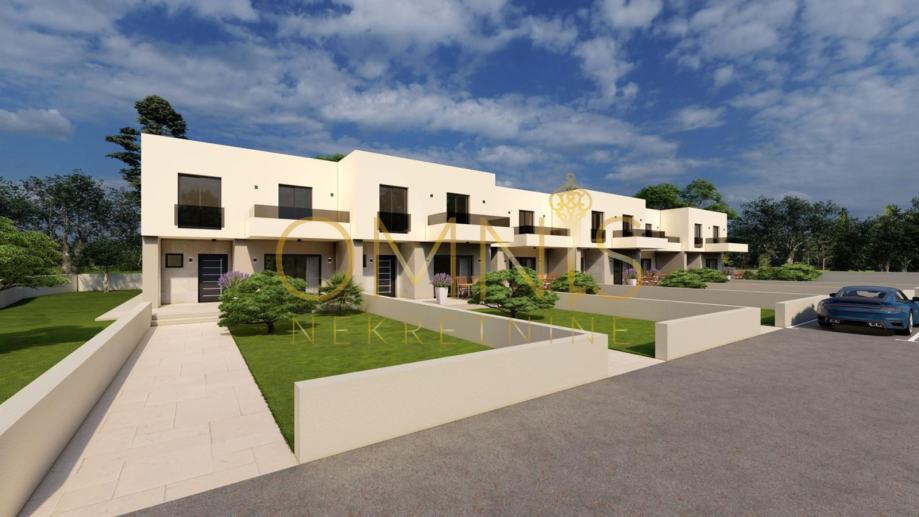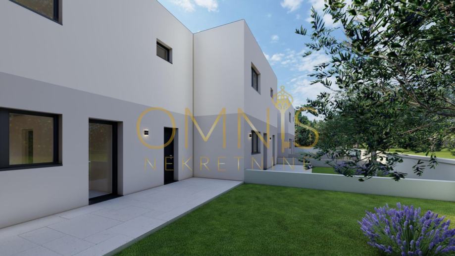 U ponudi je moderna kuća krajnja u nizu površine 127,93 m2,koncipirana kao dvoetažni stan s okućnicom od 250 m2 koja se nudi po principu "ključ u ruke"