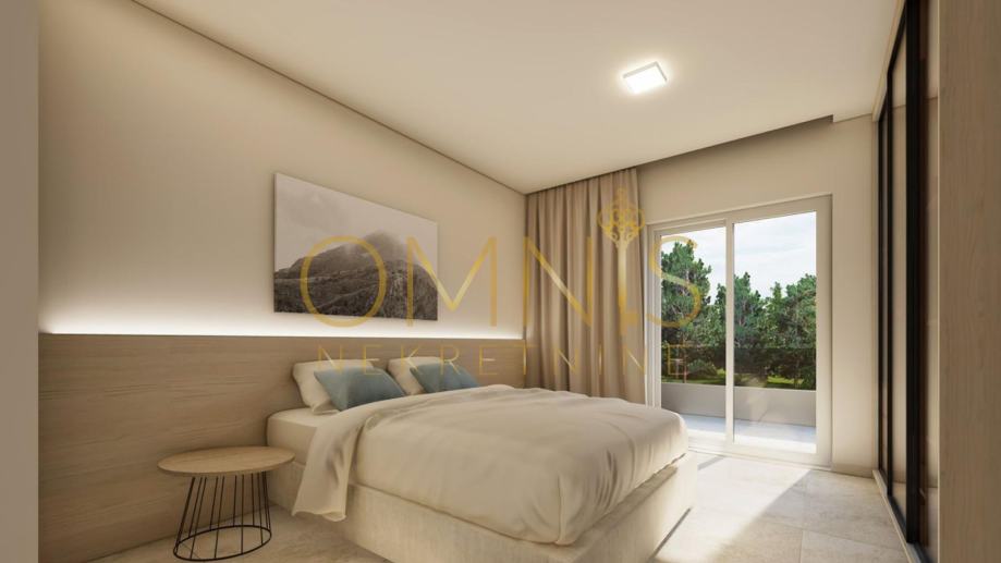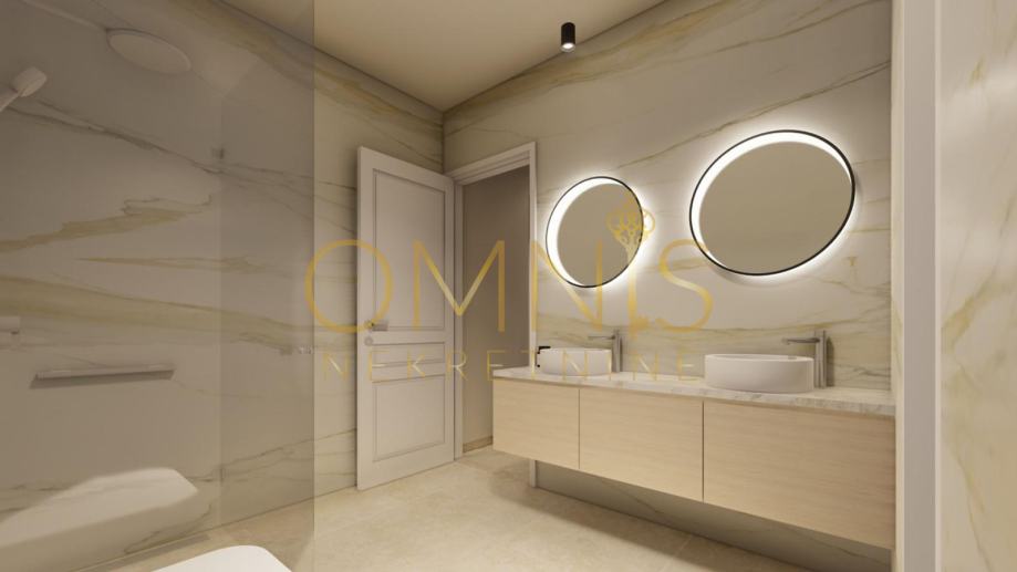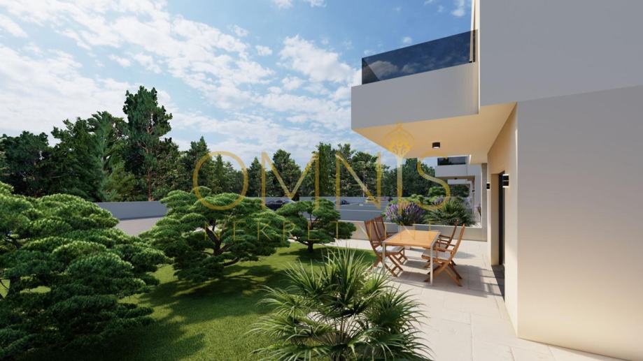 U prizemlju se nalazi prostrani dnevni boravak s velikim staklenim stijenkama koje unose obilje prirodnog svjetla, zajedno s kuhinjom, blagovaonicom, ostavom, toaletom i ulaznim hodnikom. Kuhinja ima izlaz na okućnicu, koja pruža hladovinu i savršeno je mjesto za obiteljska okupljanja. Prvi kat obuhvaća spavaću sobu s vlastitom kupaonicom i balkonom, dvije manje sobe te dodatnu kupaonicu s vešerajem.
