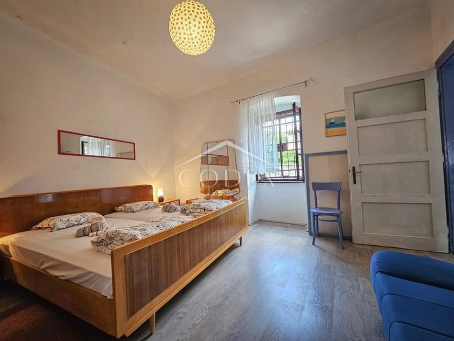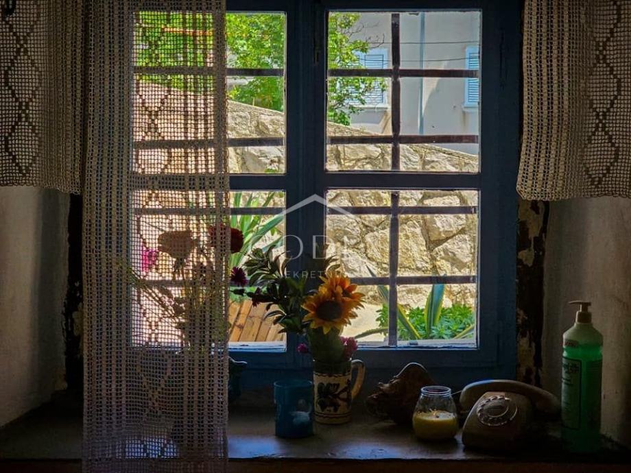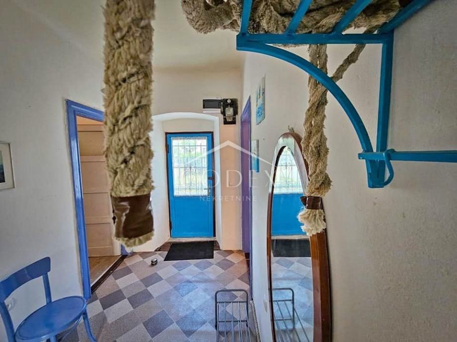 Prodaje se stara tradicionalna primorska prostrana kuća renovirana 2022 godine. Upravo zbog svoje lokacije, udaljena niti 40 m od mora, kuća je u uspješnom turističkom najmu. U prizemlju se nalazi veliki zajednicki prostor uređen kao tradicionalna konoba s kuhinjom, kupaonom i stražnjim vrtom. Stepenicama se dolazi na 1.kat gdje se smjestila kupaona, hodnik i 3 velike sobe. Fasada je obnovljena, krov će vjerojatno trebati s vremenom obnoviti. Na okućnici je manji vrt koji se može urediti u terasu.