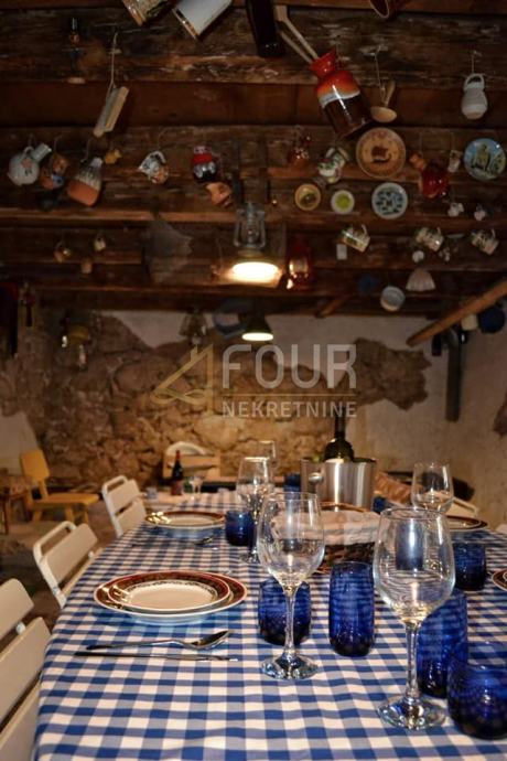 U prizemlju se nalazi konoba s kuhinjom, kupaonica, a na 1. katu su smještene tri spavaće sobe, hodnik i toalet.