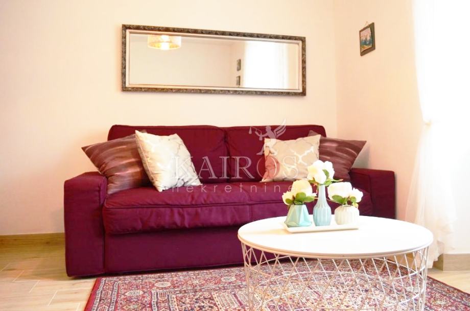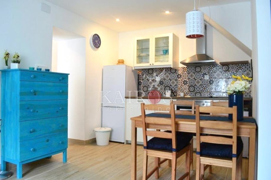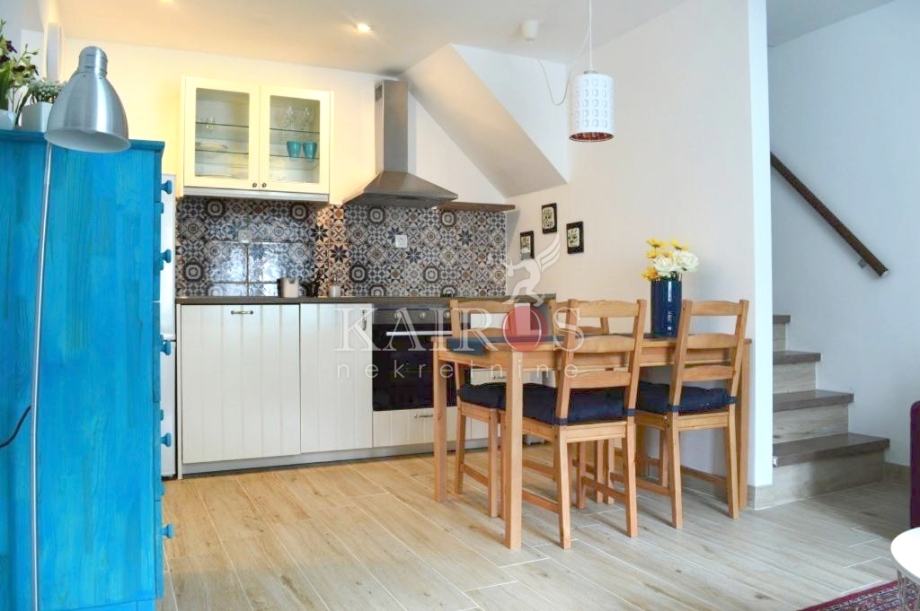 BAKARAC, lijepo uređen stan površine 45 m2, dvoetažni, prizemlje i kat kuće u nizu. Stan je dvoetažni, u prizemlju je dnevni boravak s kuhinjom i blagovaonicom, a na katu je spavaća soba s bračnim krevetom. Sve lijepo i moderno uređeno. Idealno za jednu osobu ili par.