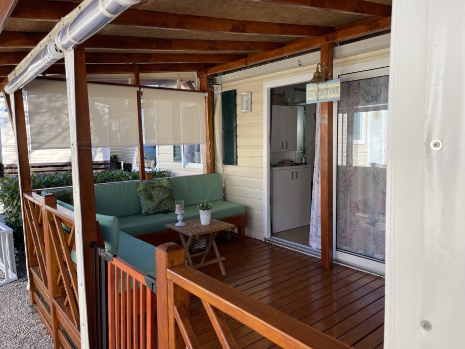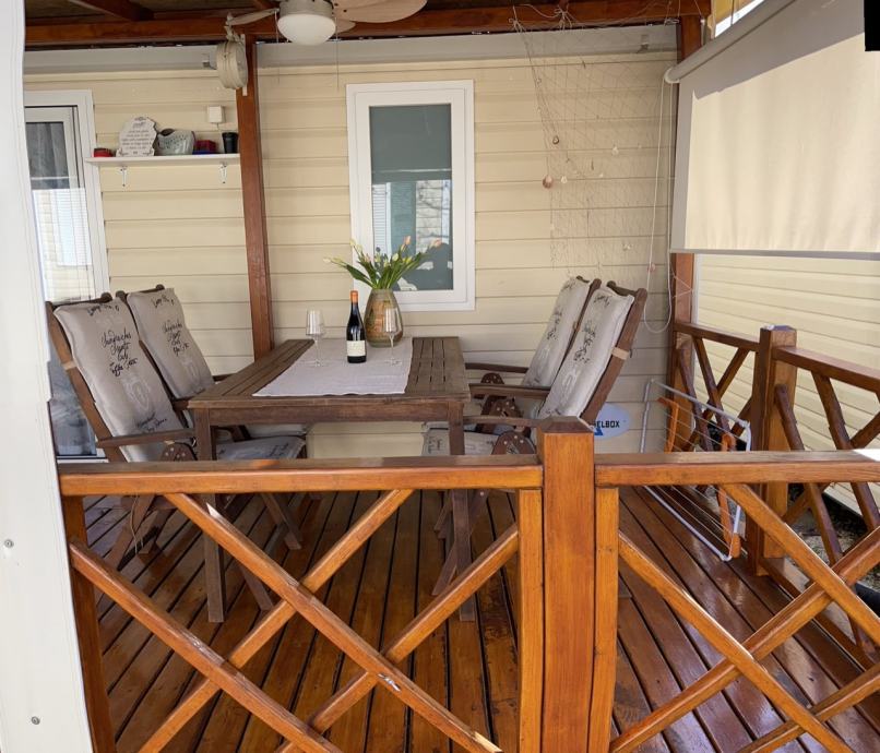 Prodajemo mobilnu kućicu od 32 m2, koja u svom sastavu ima i drvenu natkrivenu terasu od 15 m2. Mobilna kućica se sastoji od dvije spavaće sobe s krevetima 160x200 cm i dvije kupaonice s tuš kabinama, plus pomoćni ležaj s latoflex letvicama 130x200cm u kuhinjskom dijelu,kuhinja s blagovaonom.