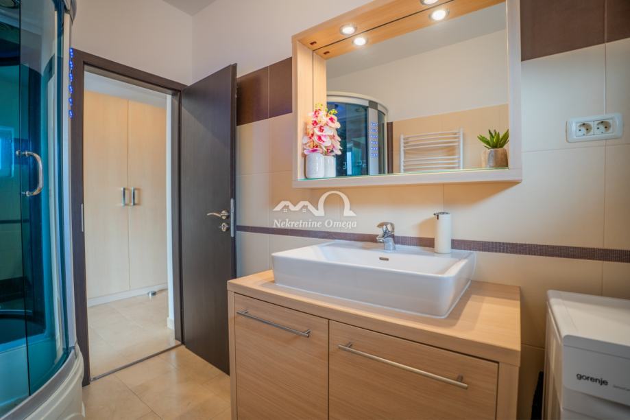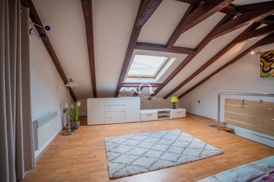 Na prodaju je dvoetažni, dvosobni stan smješten na 2. i 3. katu, ukupne bruto stambene površine 101 m², uz vrt od 45 m². Stan ima zaseban ulaz i nalazi se u mirnom dijelu Baldekina.