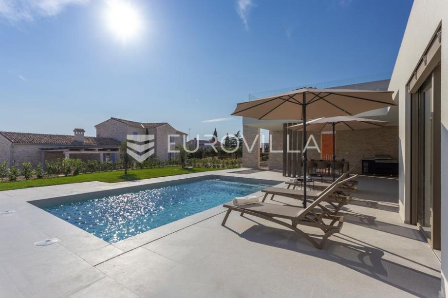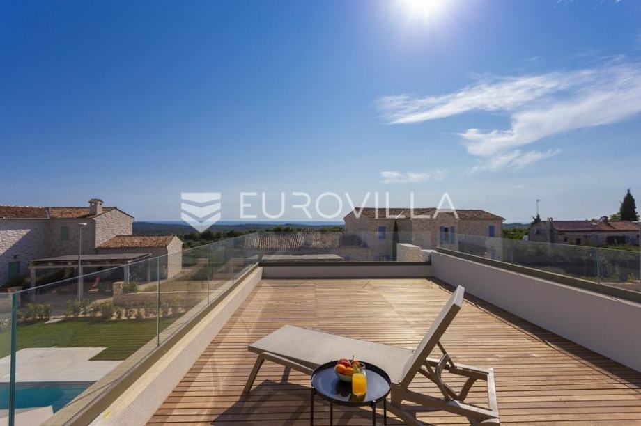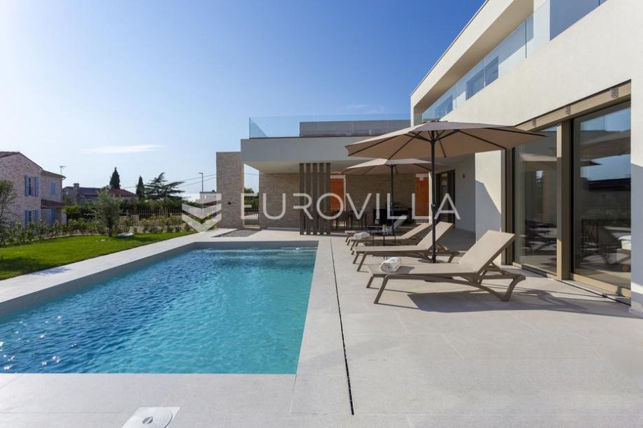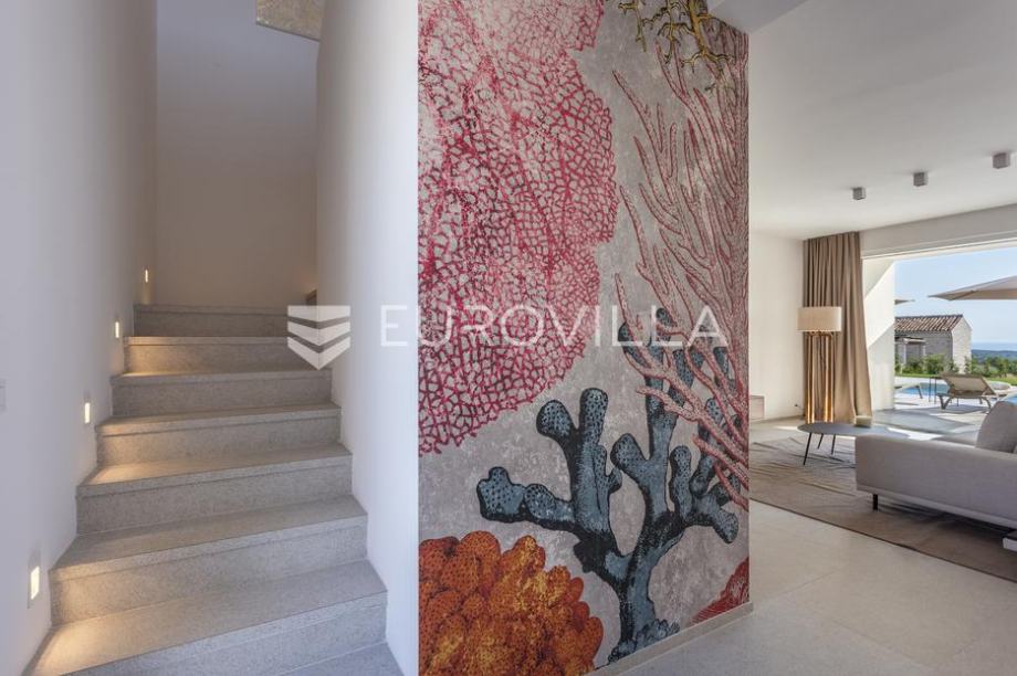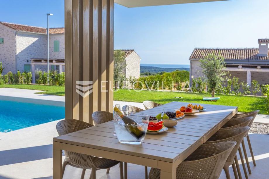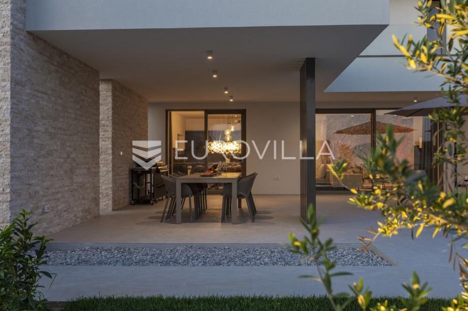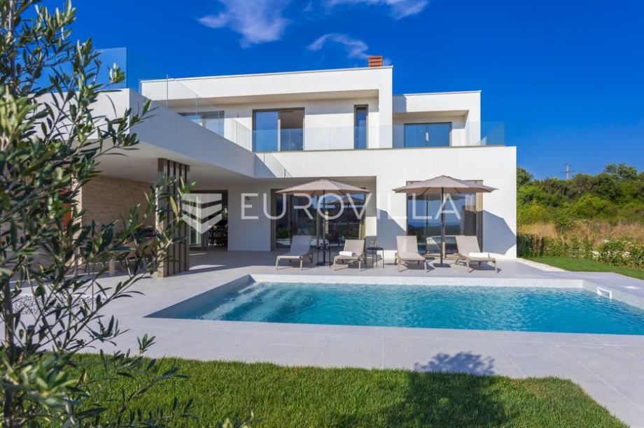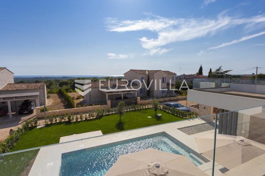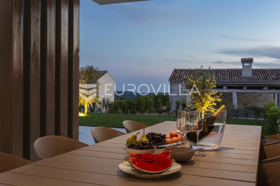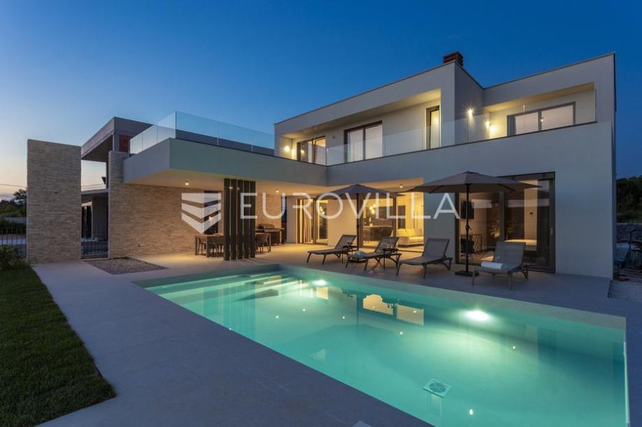EKSKLUZIVNA PONUDAU manjem šarmantnom naselju Čubani koje se nalazi između Bala i Rovinja, izdvajamo iz naše ponude dizajnersku vilu s dvije etaže ukupne stambene površine od 228,97 m2 građena u duhu moderne arhitekture s impozantnim karakterom koji odiše luksuzom i toplinom pravog modernog obiteljskog doma.Nekretnina se smjestila na ograđenoj okućnici od 688 m2, Ulaskom u vilu nalazimo se u predvorju koje odvaja privatni prostor od prostora za dnevni život vile. Tako da je dio za dnevni život vile koncipiran kao "open space" prostor u kojemu se smjestila blagovaonica s modernom i u potpunosti opremljenom kuhinjom vrhunskom aparaturom od renomiranog svjetskog proizvođača.Dalje se u prostoru nalazi prostrani dnevni boravak koji je dizajnerski odvojen od kuhinje i blagovaonice gdje nas dočekuje kvalitetno i pomno izabrana garnitura slagana po mjeri isključivo za ovu vilu a s koje se pruža direktan pogled na more.Iz dnevnog dijela izlazi se na veću natkrivenu terasu koja služi kao prekrasan prostor za prijem gostiju i druženje s pogledom na uređenu okućnicu, bazen ukupne veličine od 30 m2 i more. Uz istu terasu smjestio se i vanjski roštilj idealan za zabavu s prijateljima i obitelji te spremanje Vama najdražih delicija.U privatnome dijelu prizemlja smjestila se tehnička soba, spremište te spavaća soba sa svojom kupaonicom.Unutarnjim stubištem pristupamo katu na kojemu su se smjestile 3 spavaće sobe svaka sa svojom kupaonicom i TV-om. Svaka spavaća soba ima direktan izlaz na prostranu terasu s koje se pruža izuzetan panoramski pogled na more. Na terasi je postavljena sva priprema za jacuzzi koji bi pružio budućim vlasnicima dodatan komfor i uživanje.Okućnica vile u potpunosti je ograđena i uređena u jednakom tonu kao i vila s mnoštvo zelenila i domaćeg bilja. O svom zelenilu na okućnici i travnjaku jednostavno brine sustav automatskog navodnjavanja, a poseban ugođaj nastaje noću s pametno riješenim sustavom osvjetljenja.Tijekom izgradnje vlasnici su brinuli o svakome detalju s obzirom na to kako je vila građena s ciljem obiteljskog doma. Postavljena je visoko kvalitetna zvučna, toplinska i hidro izolacija čime se boravak u vili tijekom ekstremno toplih i hladnijih mjeseci učinio dodatno ugodnijim i jednostavnijim. Vila je opremljena klima jedinicama za hlađenje i grijanje u svakoj prostoriji, jednako tako postavljeno je i podno grijanje u svim prostorijama. Spavaće sobe dodatno krasi postavljen kvalitetni parket, a u ostatku vile visokokvalitetna dizajnerska keramika.Svojim bezvremenskim unutarnjim uređenjem, kvalitetnim materijalima i izvrsnom tehnikom gradnje ova vila zasigurno će služiti vama i vašoj obitelji kao idealno skrovište za bijeg od buke i gužve. Maksimalni komfor i kvaliteta života osigurana je izborom prvoklasnog namještaja, aparature visoke kvalitete renomiranih svjetskih proizvođača, kao i visoko kvalitetnim tehničkom opremom s kojom je ova vila opremljena.Besprijekorni simplistički moderni dizajn i jednostavne linije provlače se kroz cijelu vilu s notom topline kako i pravom obiteljskom domu priliči. Osim toga, ovdje je riječ i o vili brojnih mogućnosti s prilikom razvoja turističkog proizvoda visoke razine luksuza i sigurnoga povrata na uloženo.Osim činjenice što je riječ o jednoj od najtraženijih lokacija na području Istre, Ova vila je pomno locirana na mirnom poziciji s blizinom svog potrebnog sadržaja koji je udaljen svega nekoliko minuta lagane vožnje. Jednako tako vlasnici su pomno izabrali lokaciju vile kako bi osigurali maksimalnu privatnost i mir tijekom boravka u vili.Za više informacija slobodno nas kontaktirajte....