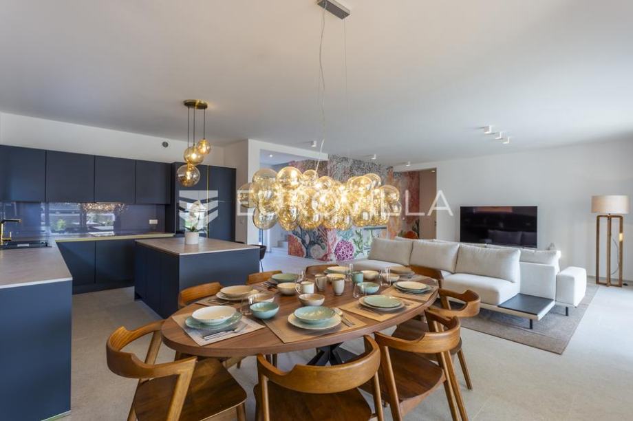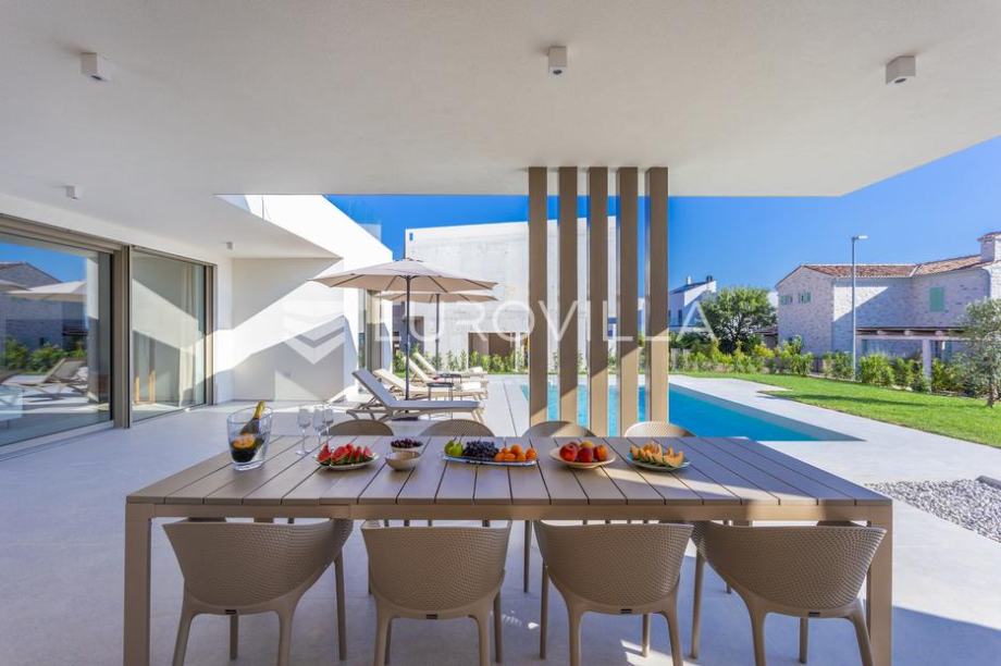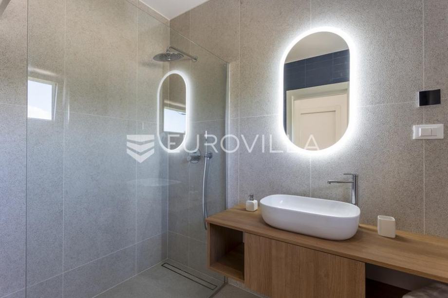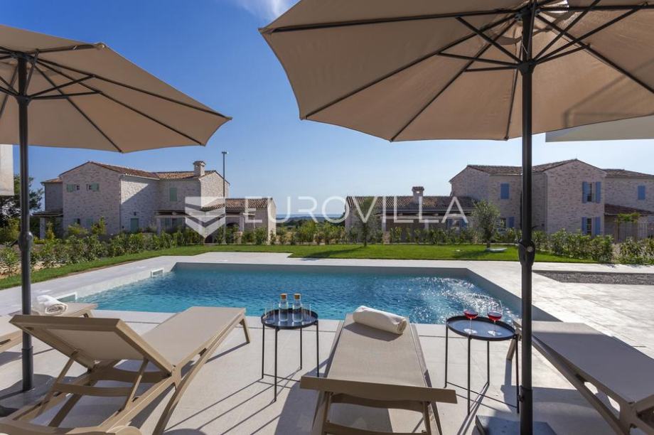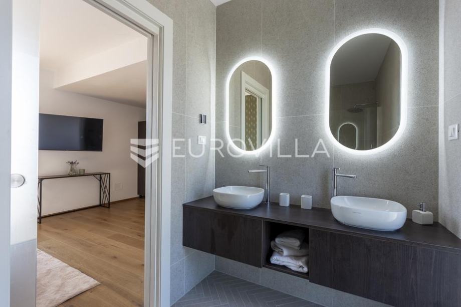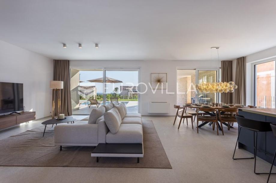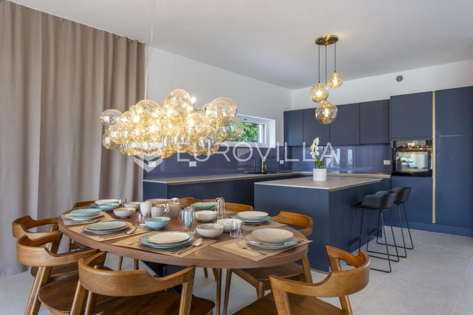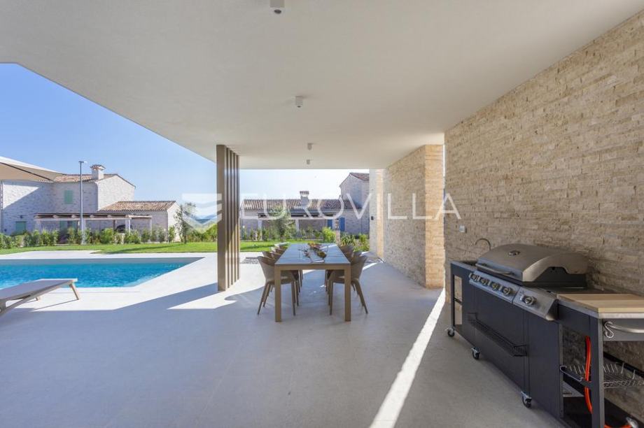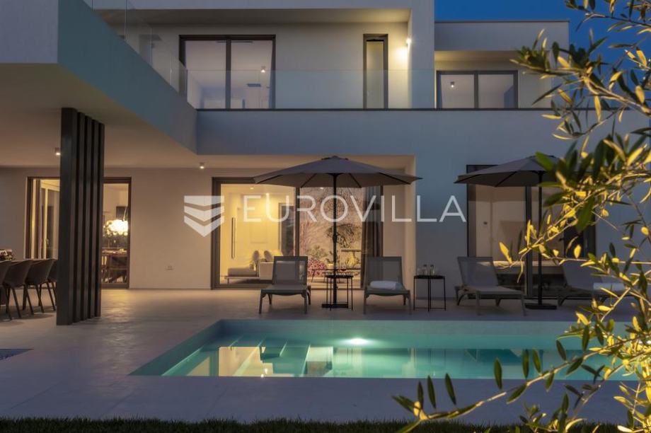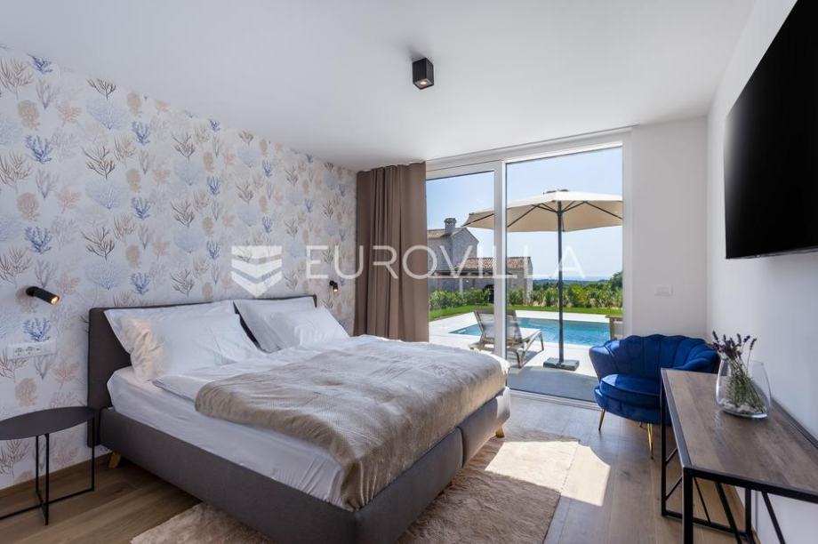 EKSKLUZIVNA PONUDAU manjem šarmantnom naselju Čubani koje se nalazi između Bala i Rovinja, izdvajamo iz naše ponude dizajnersku vilu s dvije etaže ukupne stambene površine od 228,97 m2 građena u duhu moderne arhitekture s impozantnim karakterom koji odiše luksuzom i toplinom pravog modernog obiteljskog doma.Nekretnina se smjestila na ograđenoj okućnici od 688 m2, Ulaskom u vilu nalazimo se u predvorju koje odvaja privatni prostor od prostora za dnevni život vile. Tako da je dio za dnevni život vile koncipiran kao "open space" prostor u kojemu se smjestila blagovaonica s modernom i u potpunosti opremljenom kuhinjom vrhunskom aparaturom od renomiranog svjetskog proizvođača.Dalje se u prostoru nalazi prostrani dnevni boravak koji je dizajnerski odvojen od kuhinje i blagovaonice gdje nas dočekuje kvalitetno i pomno izabrana garnitura slagana po mjeri isključivo za ovu vilu a s koje se pruža direktan pogled na more.Iz dnevnog dijela izlazi se na veću natkrivenu terasu koja služi kao prekrasan prostor za prijem gostiju i druženje s pogledom na uređenu okućnicu, bazen ukupne veličine od 30 m2 i more. Uz istu terasu smjestio se i vanjski roštilj idealan za zabavu s prijateljima i obitelji te spremanje Vama najdražih delicija.U privatnome dijelu prizemlja smjestila se tehnička soba, spremište te spavaća soba sa svojom kupaonicom.Unutarnjim stubištem pristupamo katu na kojemu su se smjestile 3 spavaće sobe svaka sa svojom kupaonicom i TV-om. Svaka spavaća soba ima direktan izlaz na prostranu terasu s koje se pruža izuzetan panoramski pogled na more. Na terasi je postavljena sva priprema za jacuzzi koji bi pružio budućim vlasnicima dodatan komfor i uživanje.Okućnica vile u potpunosti je ograđena i uređena u jednakom tonu kao i vila s mnoštvo zelenila i domaćeg bilja. O svom zelenilu na okućnici i travnjaku jednostavno brine sustav automatskog navodnjavanja, a poseban ugođaj nastaje noću s pametno riješenim sustavom osvjetljenja.Tijekom izgradnje vlasnici su brinuli o svakome detalju s obzirom na to kako je vila građena s ciljem obiteljskog doma. Postavljena je visoko kvalitetna zvučna, toplinska i hidro izolacija čime se boravak u vili tijekom ekstremno toplih i hladnijih mjeseci učinio dodatno ugodnijim i jednostavnijim. Vila je opremljena klima jedinicama za hlađenje i grijanje u svakoj prostoriji, jednako tako postavljeno je i podno grijanje u svim prostorijama. Spavaće sobe dodatno krasi postavljen kvalitetni parket, a u ostatku vile visokokvalitetna dizajnerska keramika.Svojim bezvremenskim unutarnjim uređenjem, kvalitetnim materijalima i izvrsnom tehnikom gradnje ova vila zasigurno će služiti vama i vašoj obitelji kao idealno skrovište za bijeg od buke i gužve. Maksimalni komfor i kvaliteta života osigurana je izborom prvoklasnog namještaja, aparature visoke kvalitete renomiranih svjetskih proizvođača, kao i visoko kvalitetnim tehničkom opremom s kojom je ova vila opremljena.Besprijekorni simplistički moderni dizajn i jednostavne linije provlače se kroz cijelu vilu s notom topline kako i pravom obiteljskom domu priliči. Osim toga, ovdje je riječ i o vili brojnih mogućnosti s prilikom razvoja turističkog proizvoda visoke razine luksuza i sigurnoga povrata na uloženo.Osim činjenice što je riječ o jednoj od najtraženijih lokacija na području Istre, Ova vila je pomno locirana na mirnom poziciji s blizinom svog potrebnog sadržaja koji je udaljen svega nekoliko minuta lagane vožnje. Jednako tako vlasnici su pomno izabrali lokaciju vile kako bi osigurali maksimalnu privatnost i mir tijekom boravka u vili.Za više informacija slobodno nas kontaktirajte....